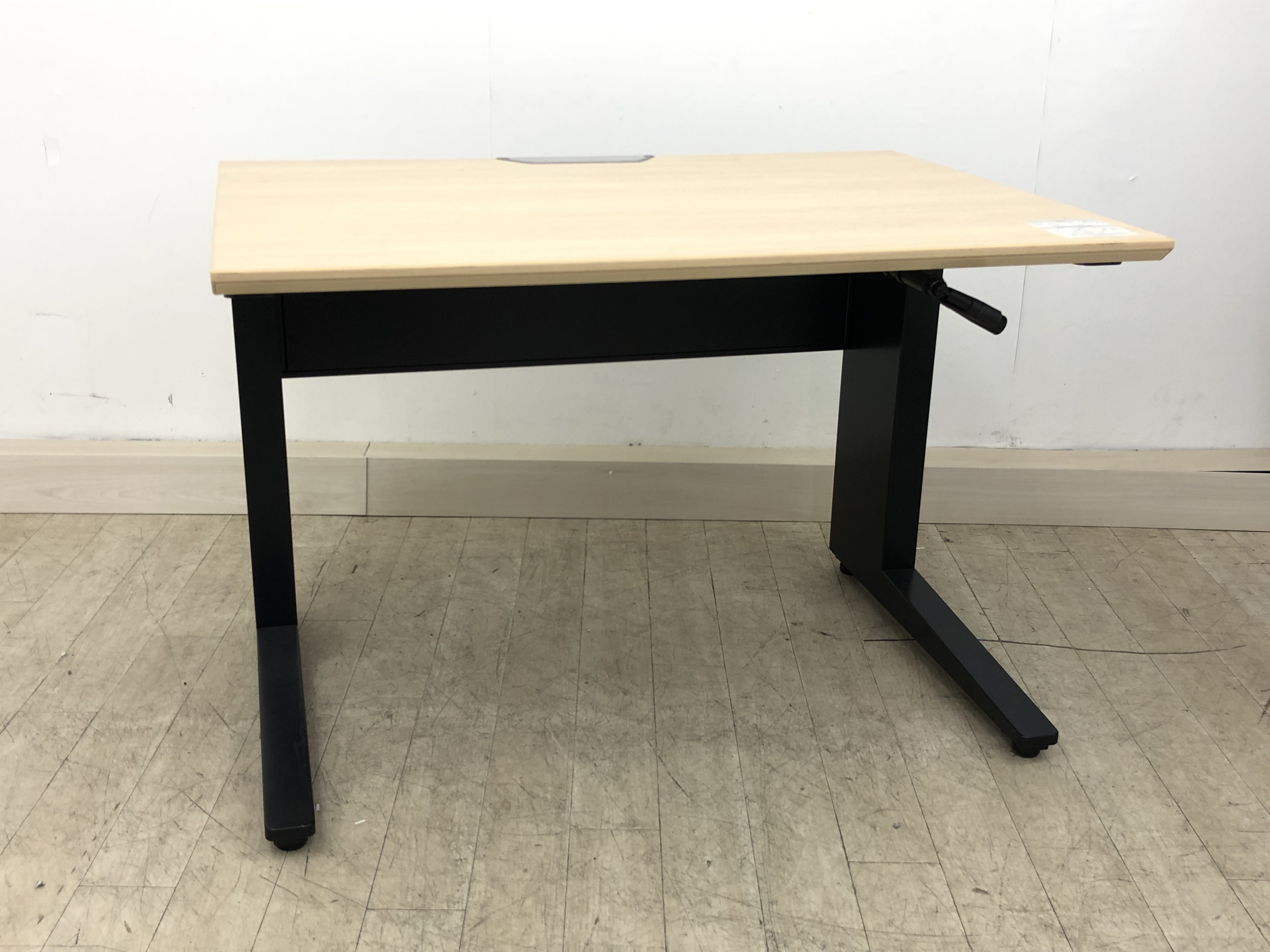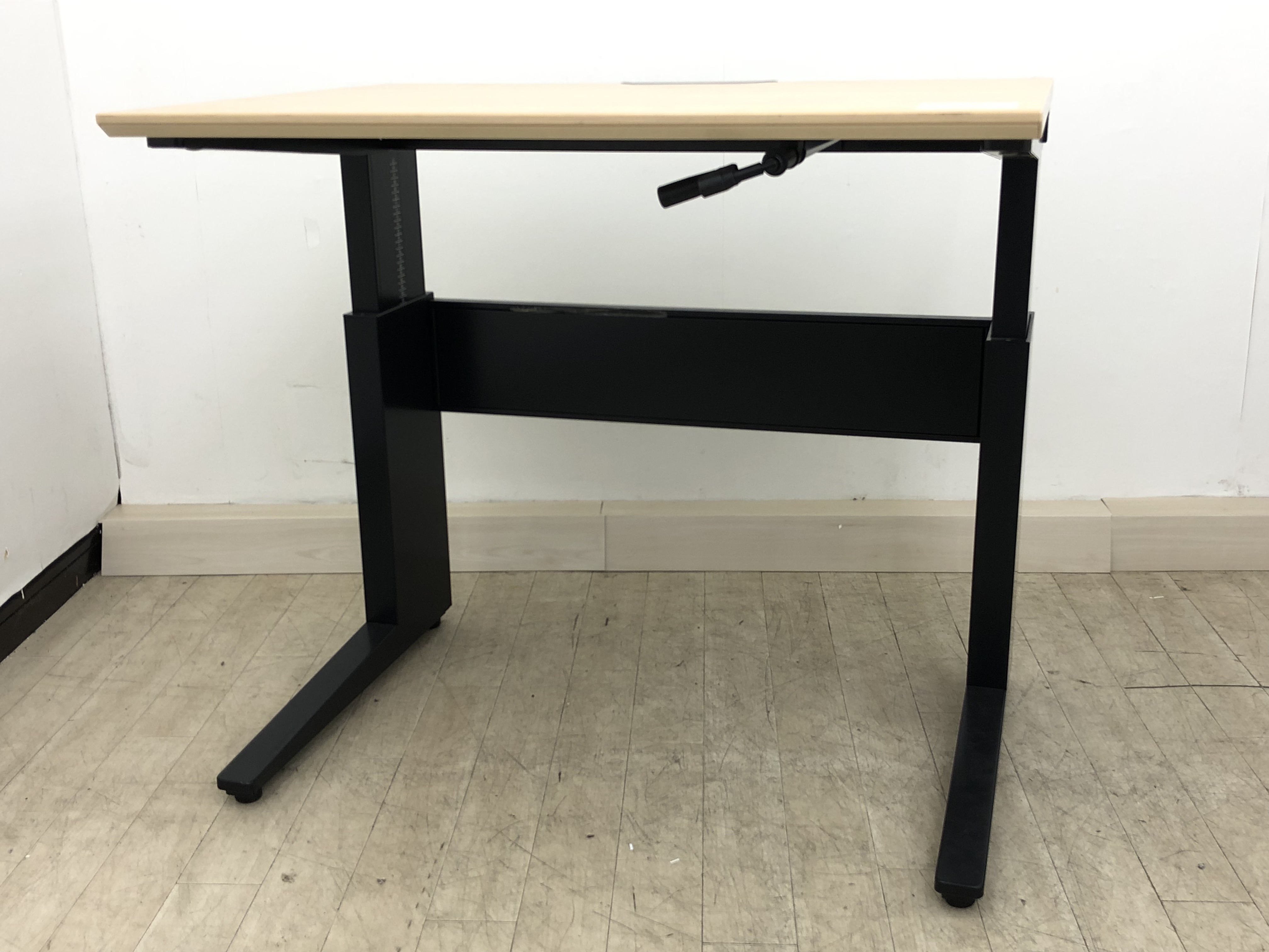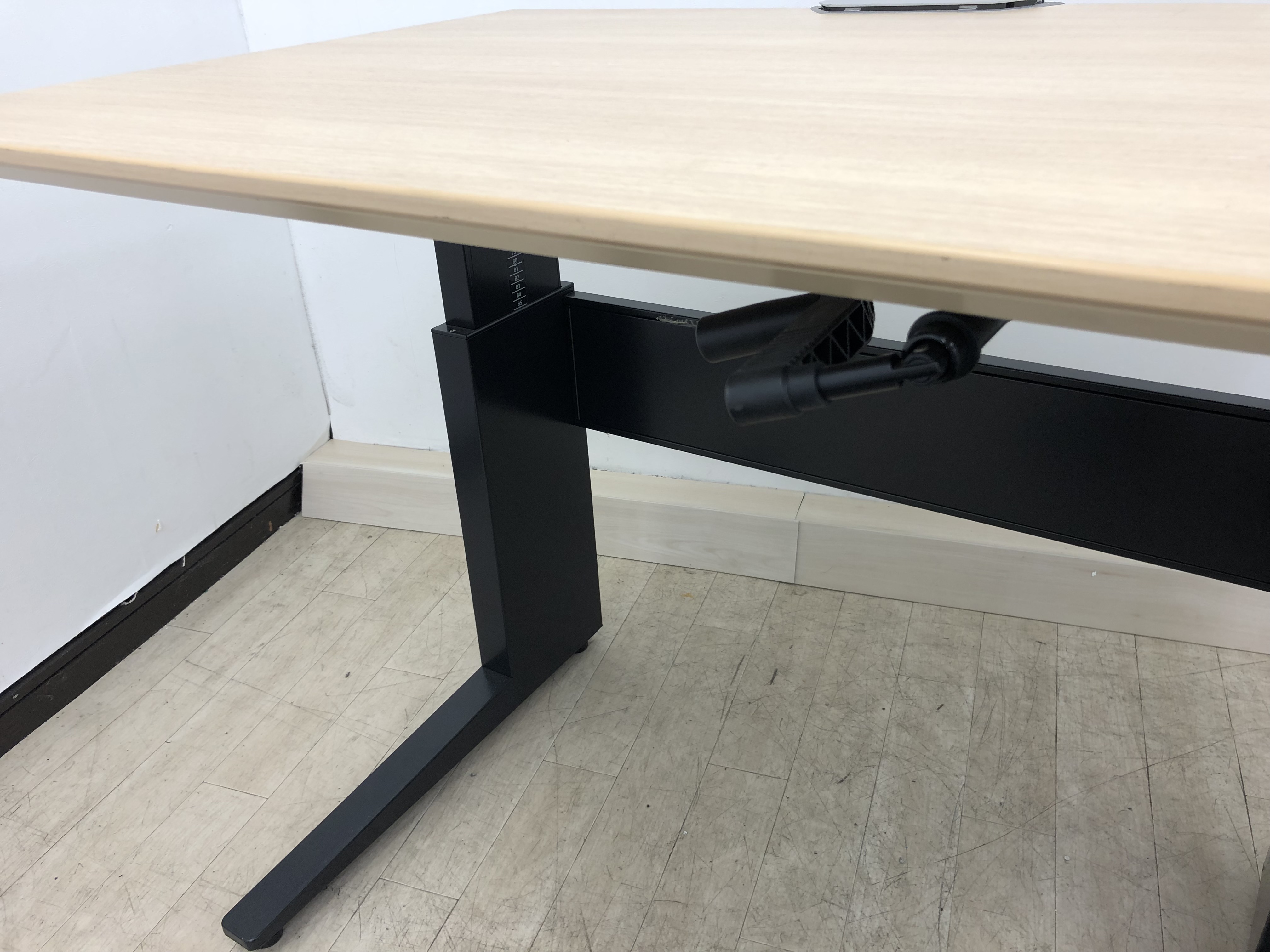 【来ましたトレンド昇降デスク!】木目天板とブラックの脚はかっこいいとしか言えません♦オカムラ製※手動タイプ- 春日部・越谷店