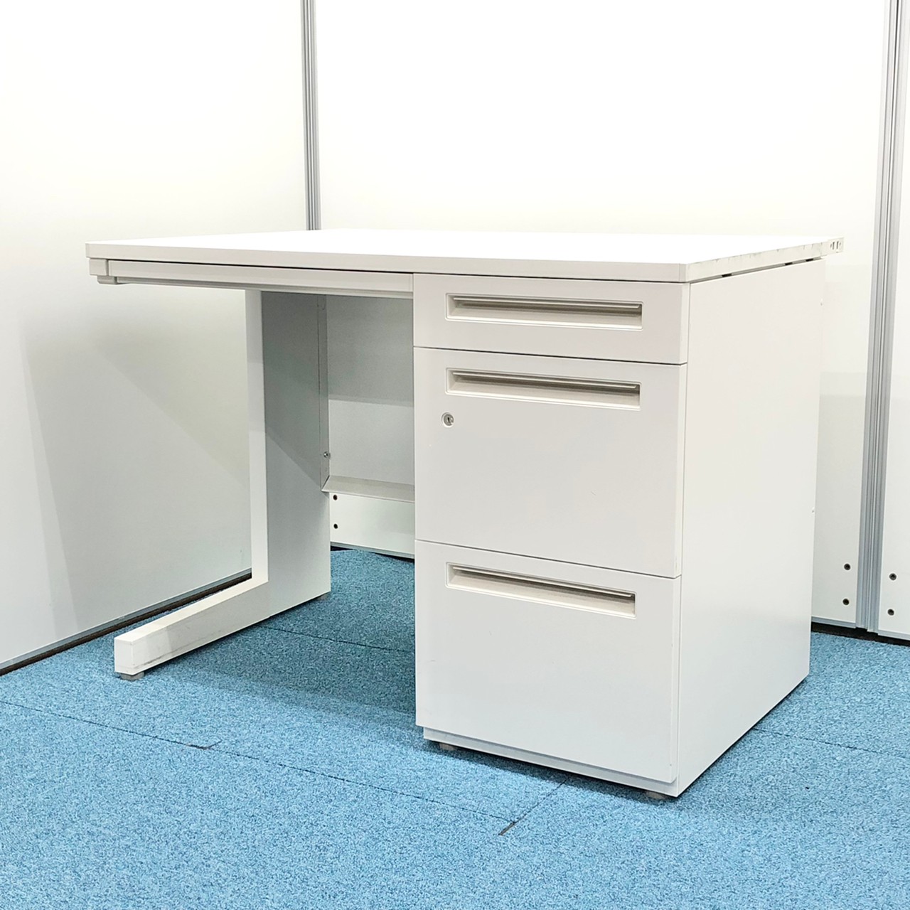 【内田洋行製の定番デスクが入荷致しました!】中古 片袖 ホワイト W1000 H720 増員 入れ替え シリンダー錠