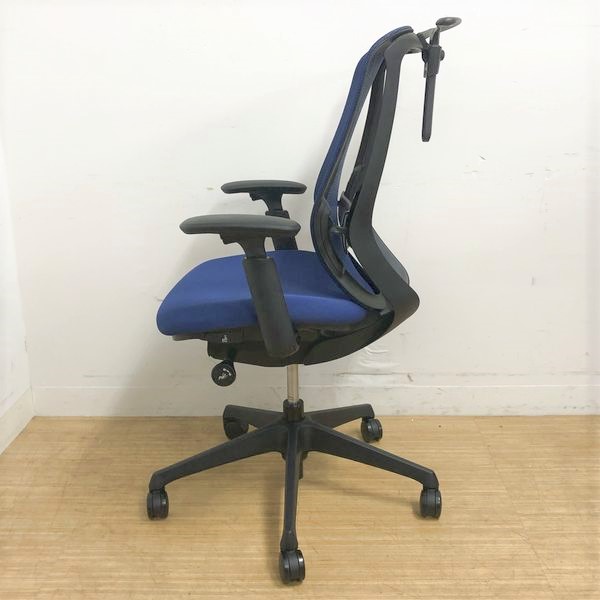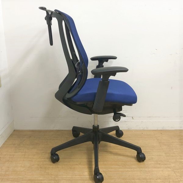 【新品ヘッドレスト交換済み】オカムラ/シルフィー/ブルー/可動肘