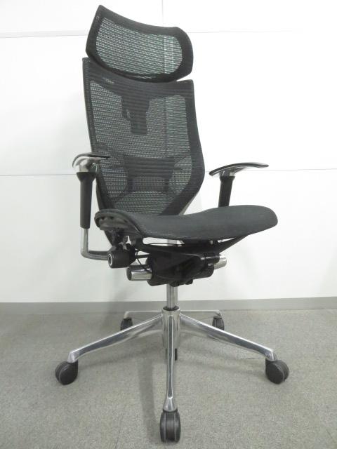 【オフィスの執務室、会議室におすすめ!】■オカムラ(okamura)製 バロン(Baron)チェア 肘付き ハイバック ■背・座面メッシュ ■可動肘 ■ヘッドレスト付き ■ブラック【硬めの座面が大人気!国産メッシュチェアの代表格!】