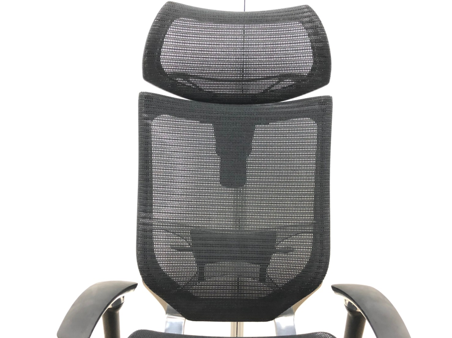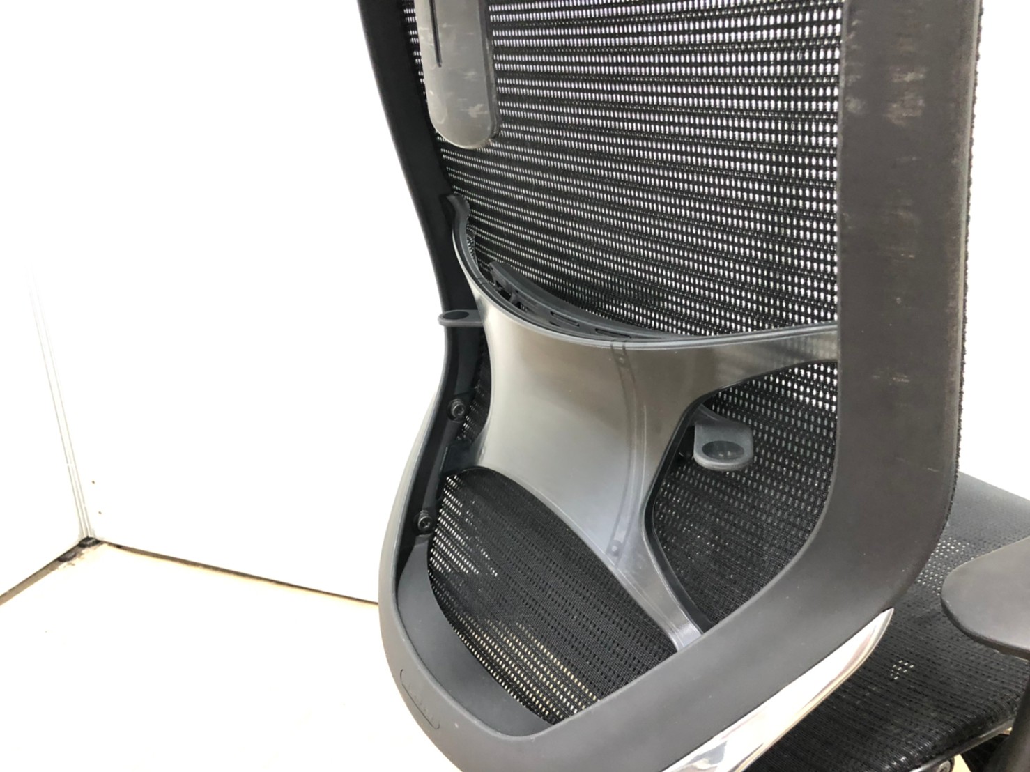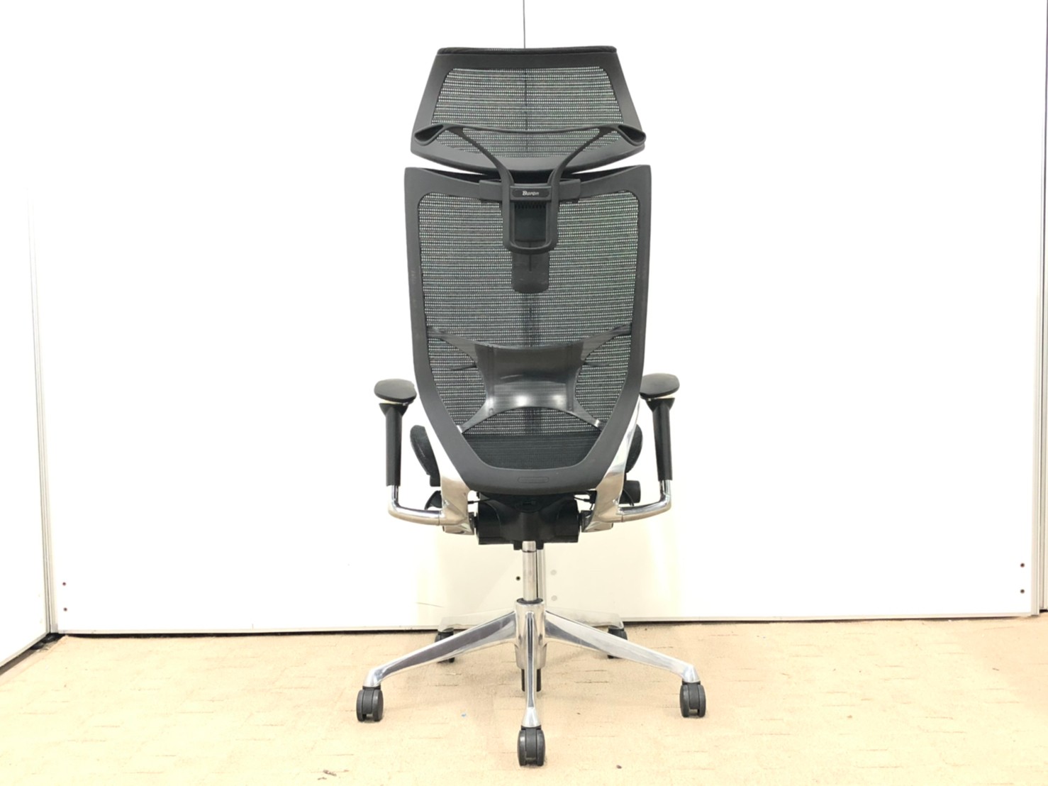 【2018年製】オカムラ バロンチェア エクストラハイバックモデル 座:メッシュ 背:メッシュ シルバーフレーム アジャストアーム 可動ヘッドレスト搭載 ※座面ヨレあり