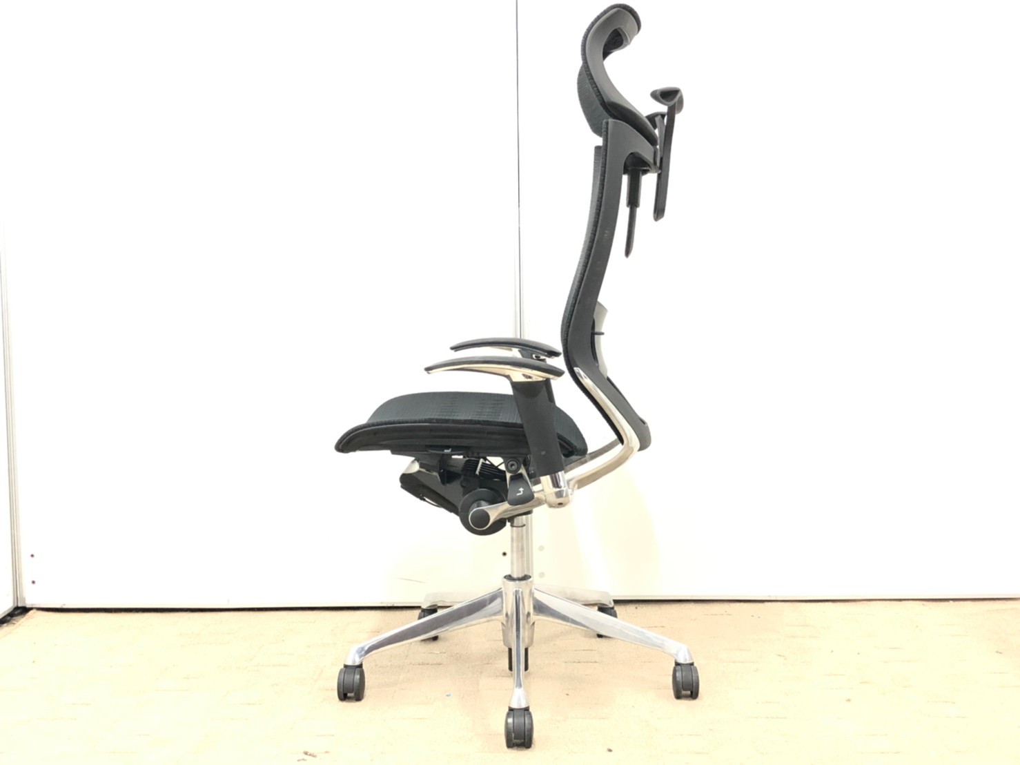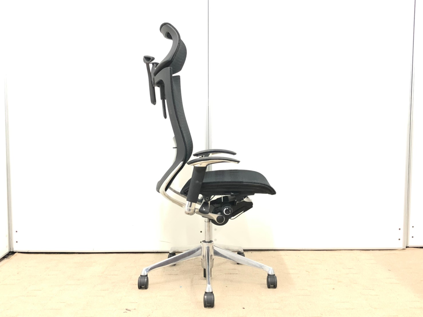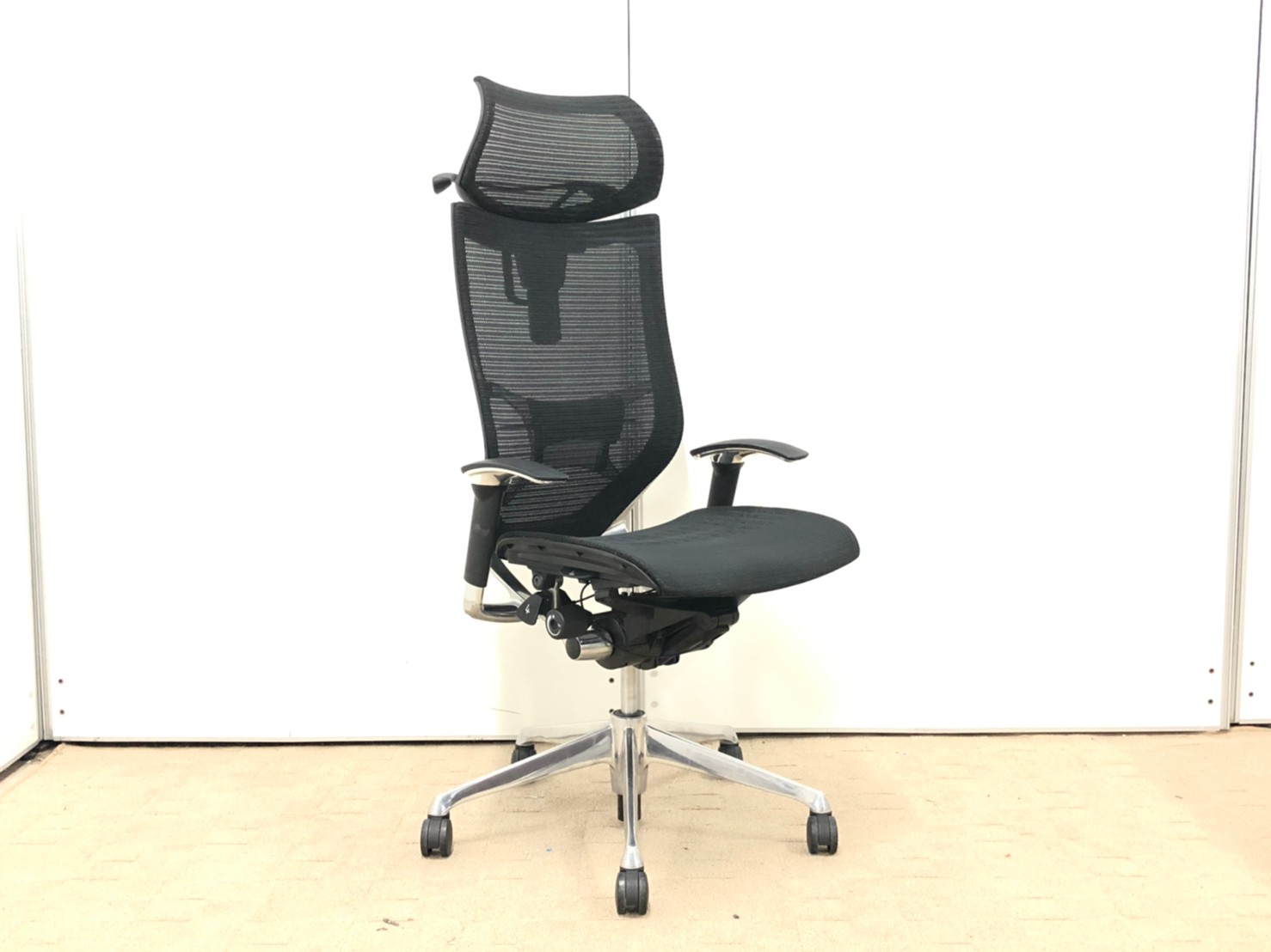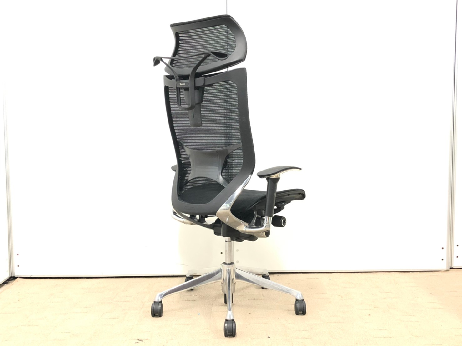【限定1脚】人気のヘッドレスト付!数量限定入荷!【良い椅子は腰を守る投資です!】■オカムラ バロンチェア 可動肘付 ブラック ヘッドレスト付 座面メッシュ シルバーフレーム ハンガー付 ■上質な座り心地を体感できます!