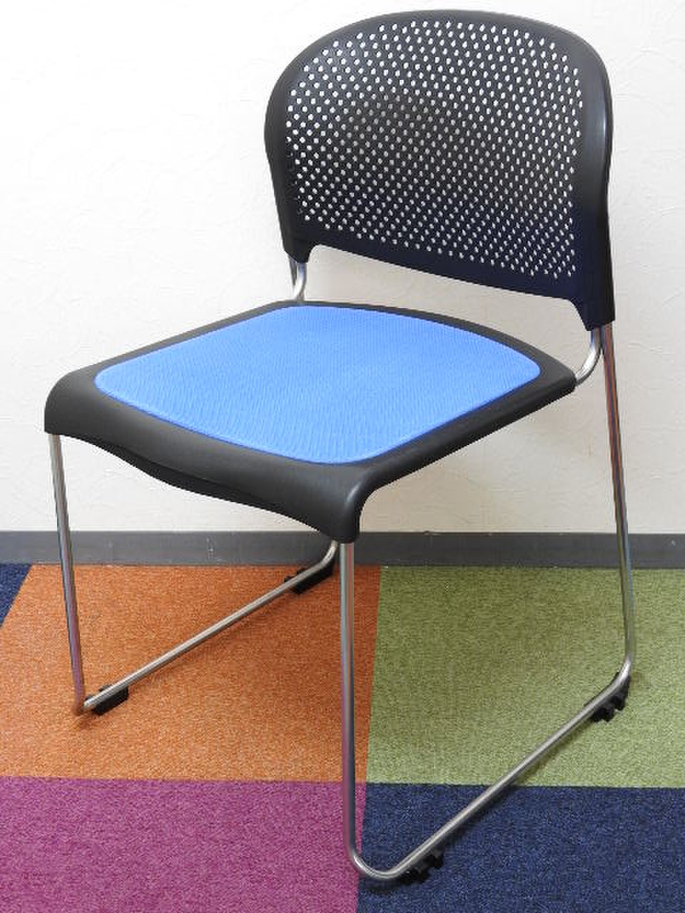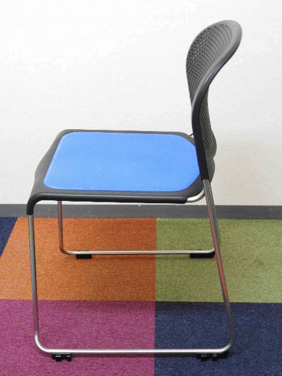 【背面樹脂で通気性◎】■オカムラ製 スタッキングチェア ブルー ■【使い勝手の良い軽量タイプ!】- 川崎店