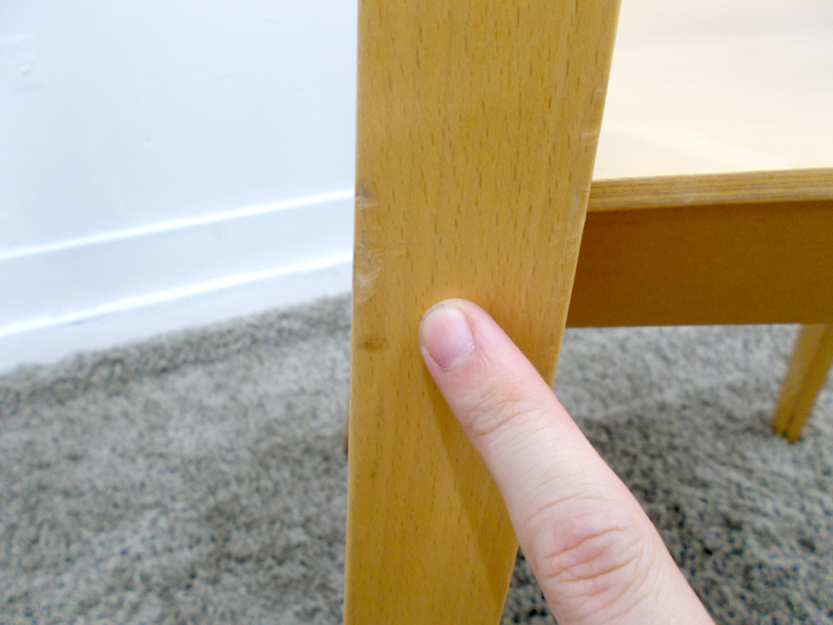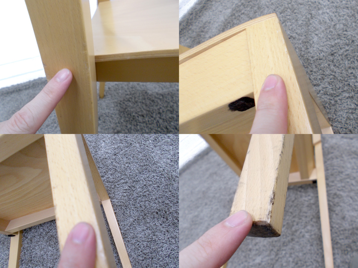 - 目立つ箇所あり傷・破れ・ほつれ・へたり・しわが多数または深い傷・破れ・ほつれ・へたり・しわが一部ある。※座面・背もたれ、シェル、脚部等にある。