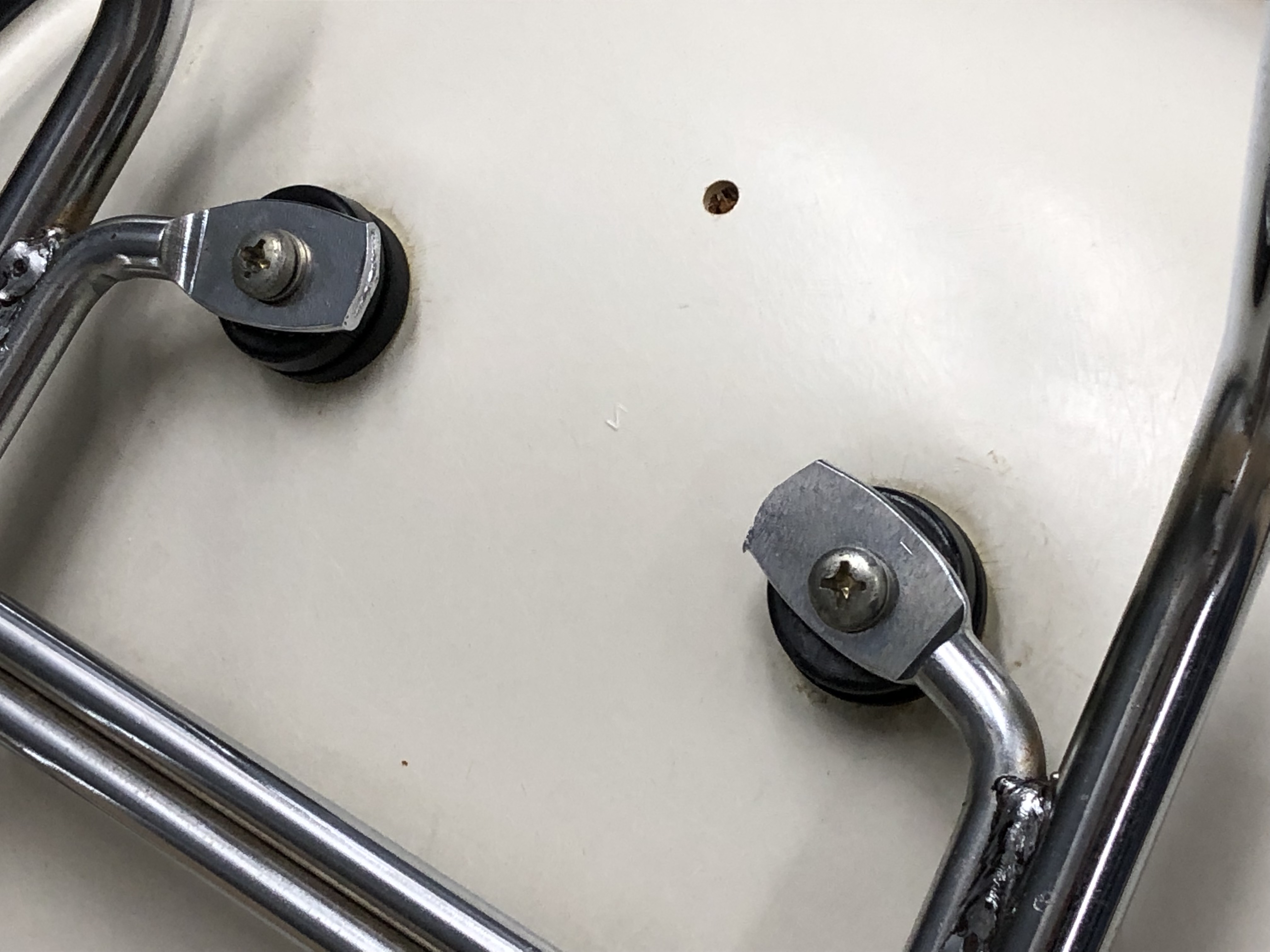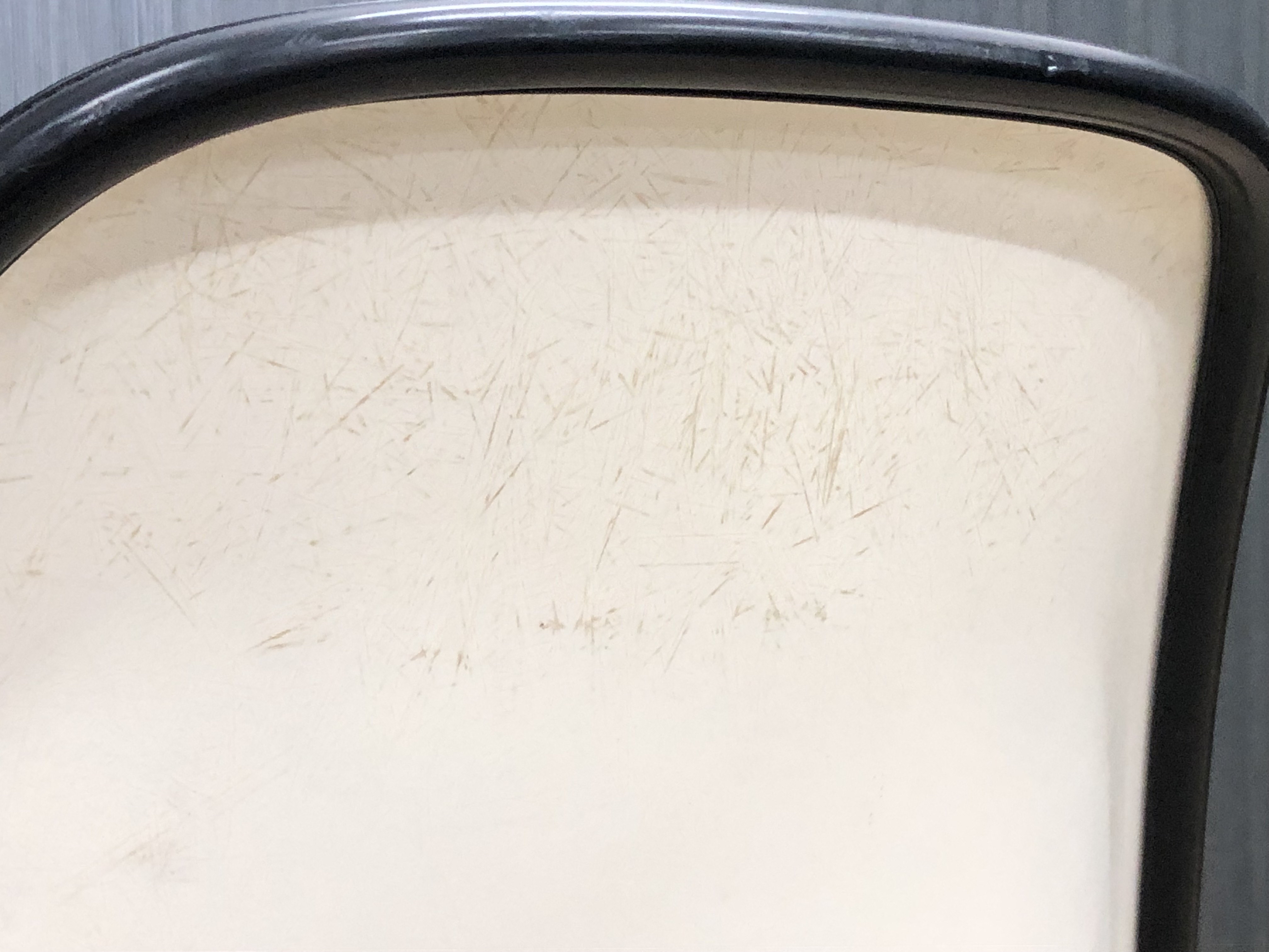 - かなり強い濃い黄ばみ・変色が商品全体にある。(例、座面・背もたれ、脚部等にある。)