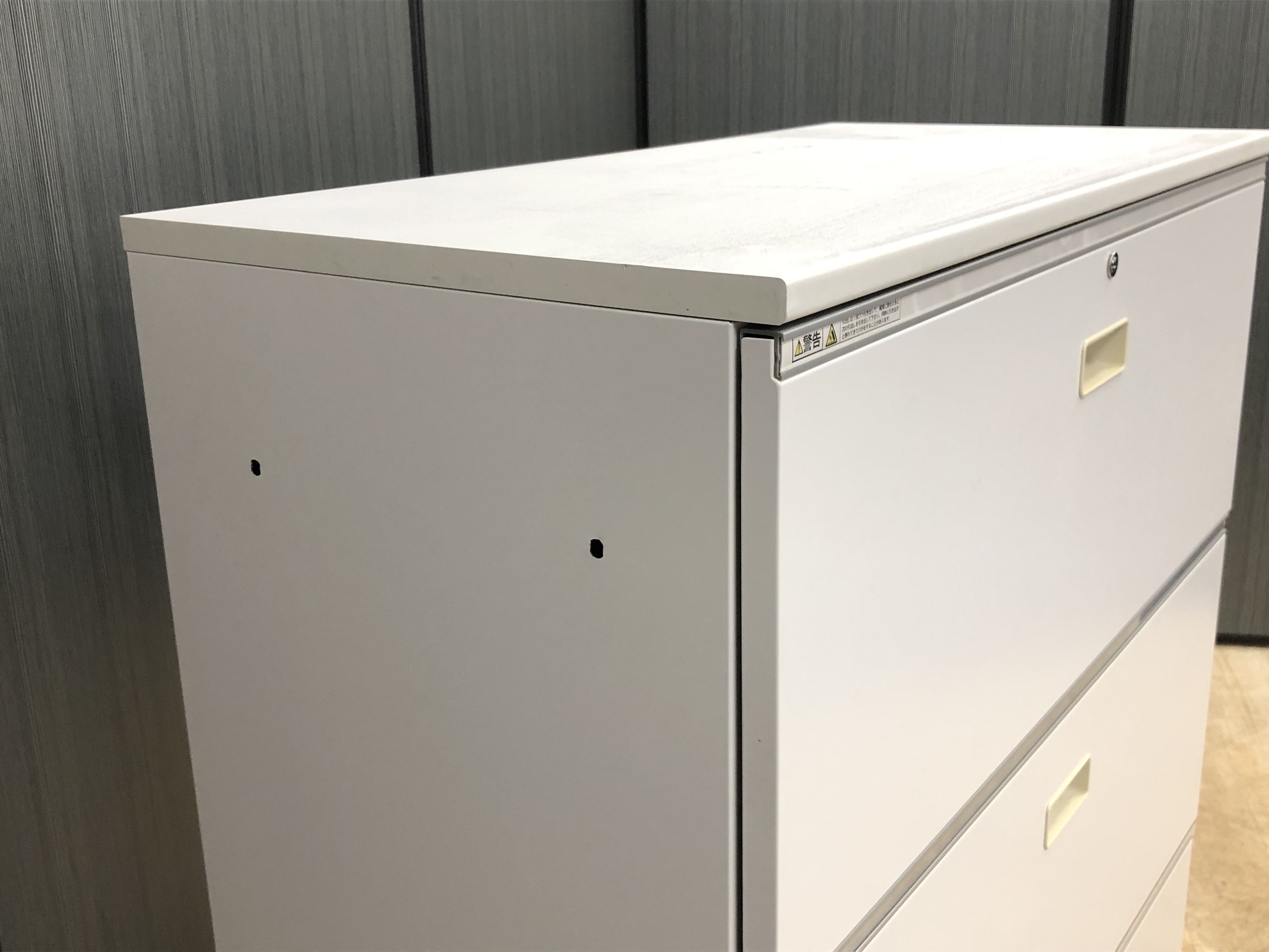 【A4ファイルも沢山収納可能!ホワイトカラーの人気シリーズ3段ラテラル書庫!】/オススメ(おすすめ) /人気商品【弊社使用欄:A01013834】3段ラテラル書庫/ローキャビネット/天板付き/ホワイト/シリンダー錠/ITOKI/THIN LINE■イトーキ/シンライン※取っ手部分日焼あり