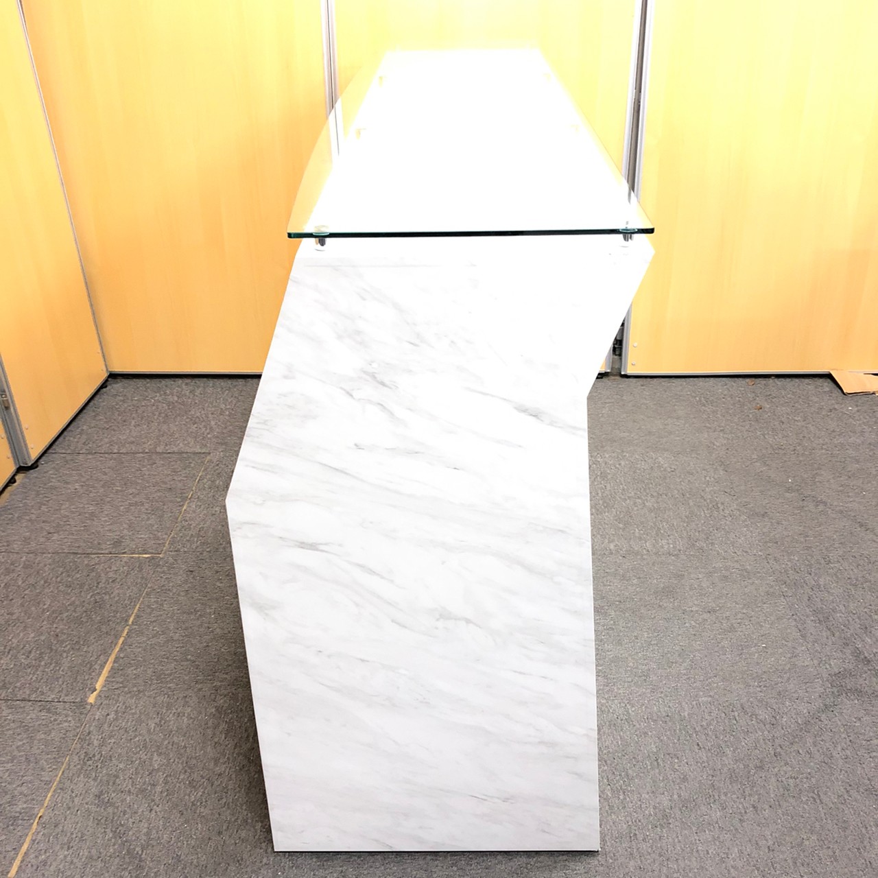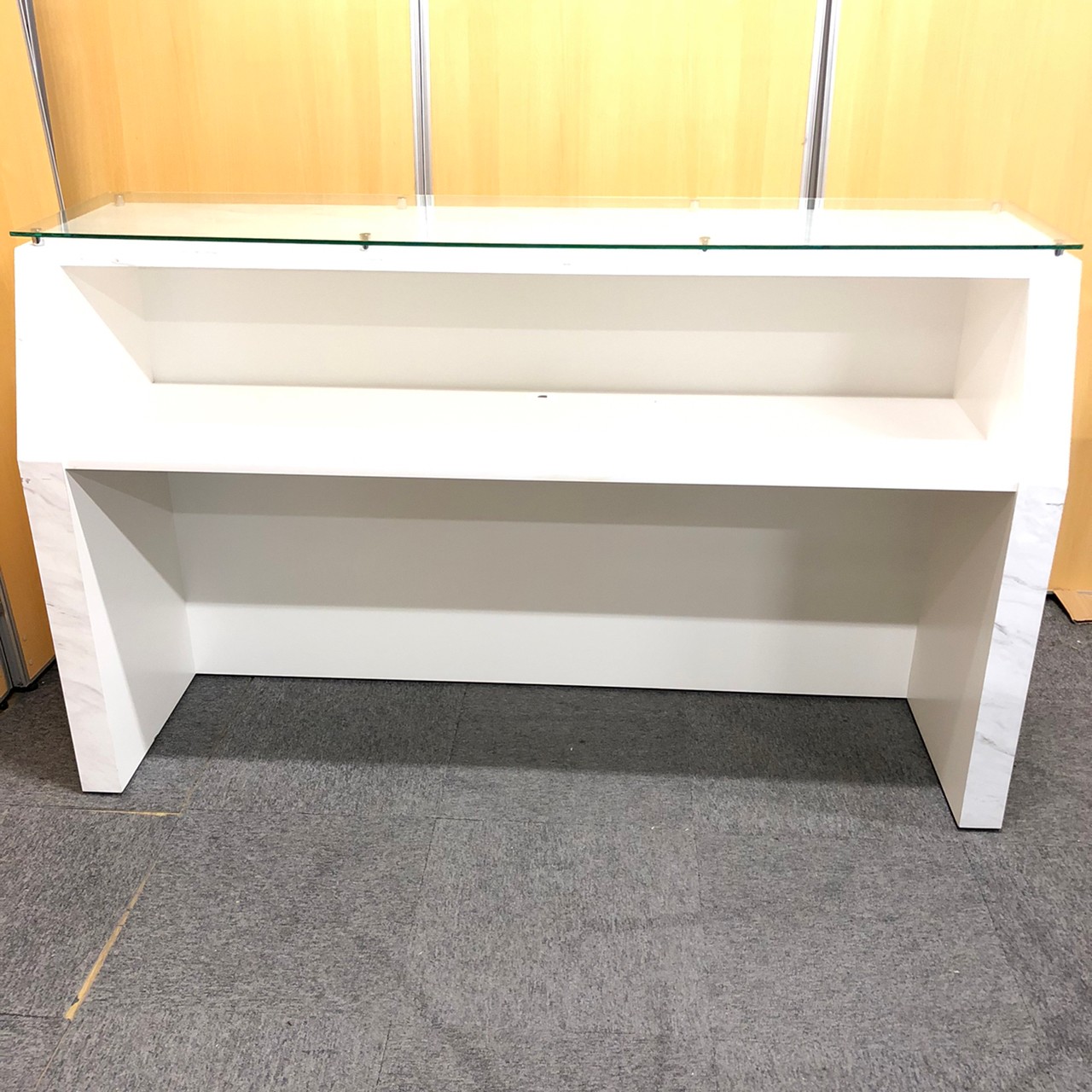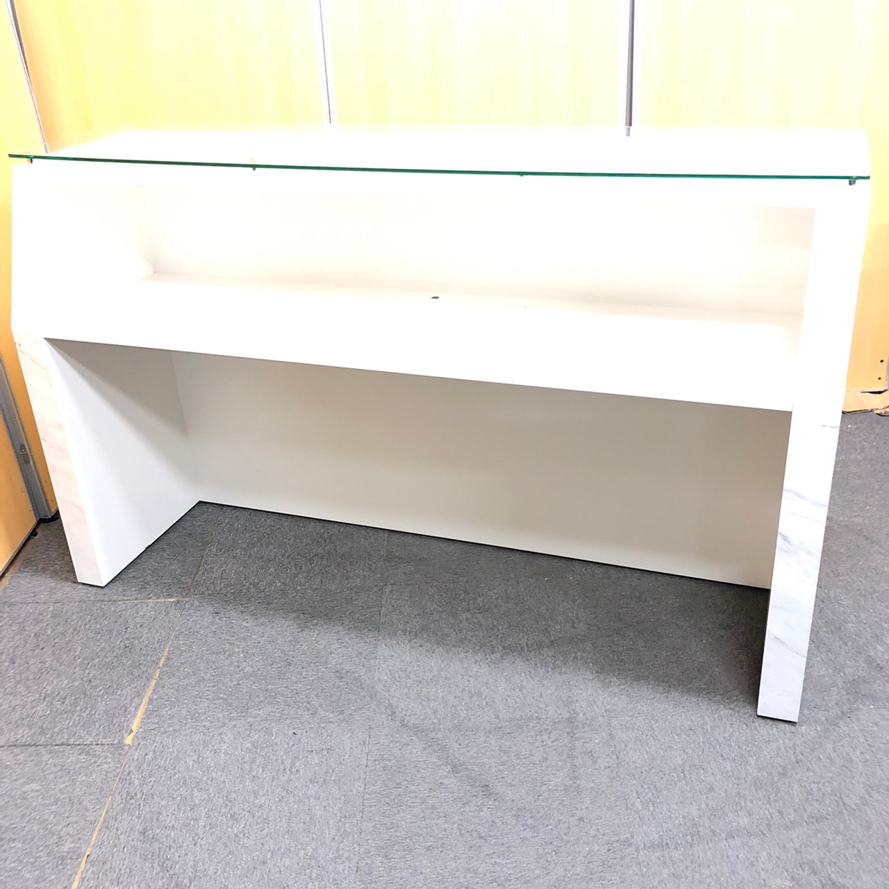 【1台入荷】オシャレなエントランスに必須!ガラス天板大理石調のハイカウンター入荷!中古 オフィス 家具 ホワイト 起業 移転 レイアウト変更 内装- 神戸・三宮店