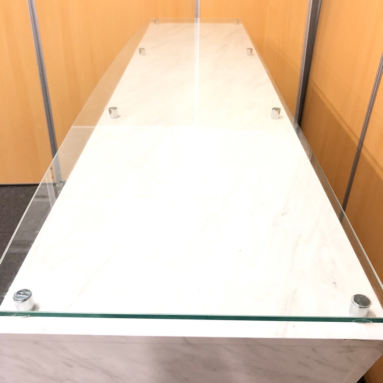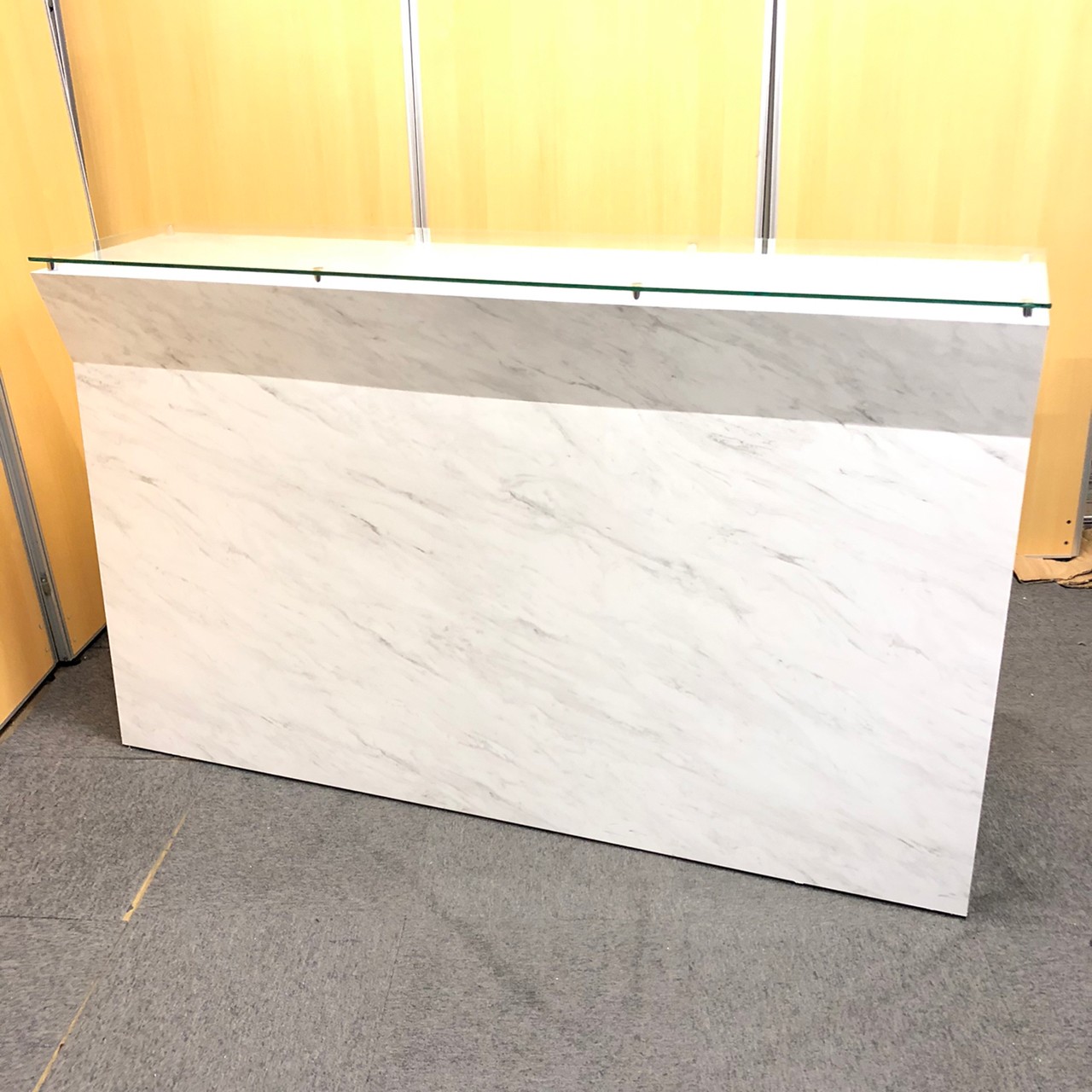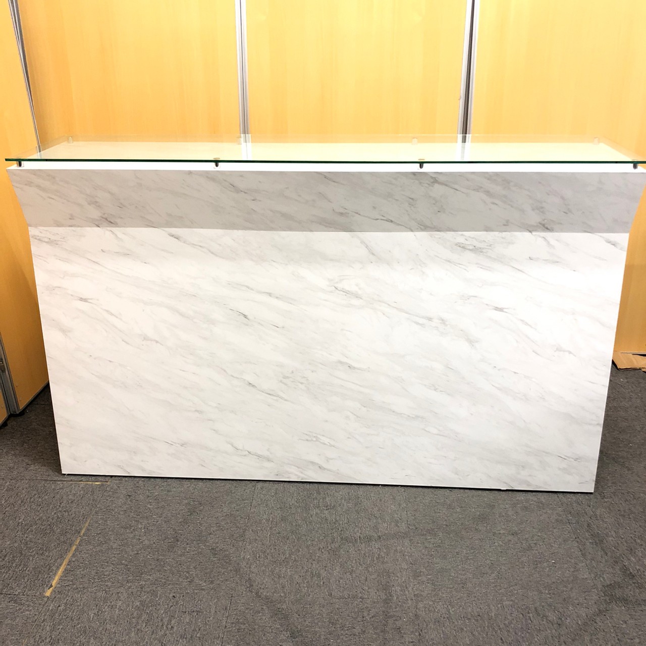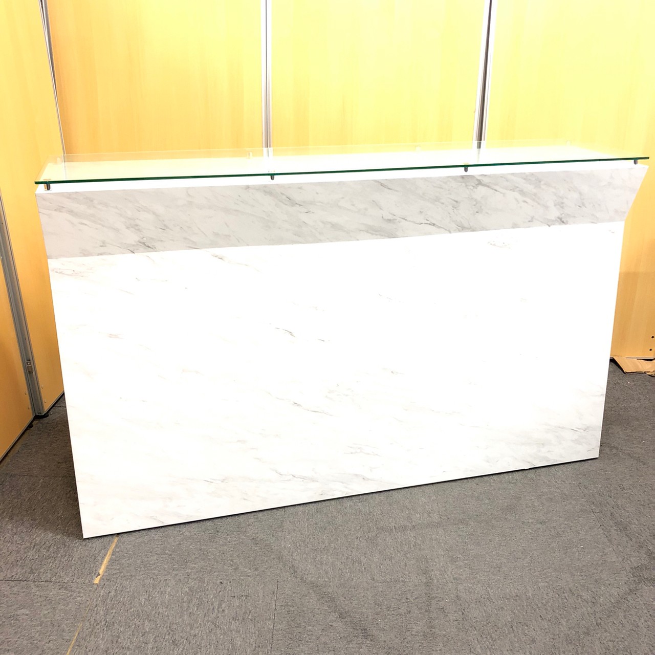 【1台入荷】オシャレなエントランスに必須!ガラス天板大理石調のハイカウンター入荷!中古 オフィス 家具 ホワイト 起業 移転 レイアウト変更 内装- 神戸・三宮店