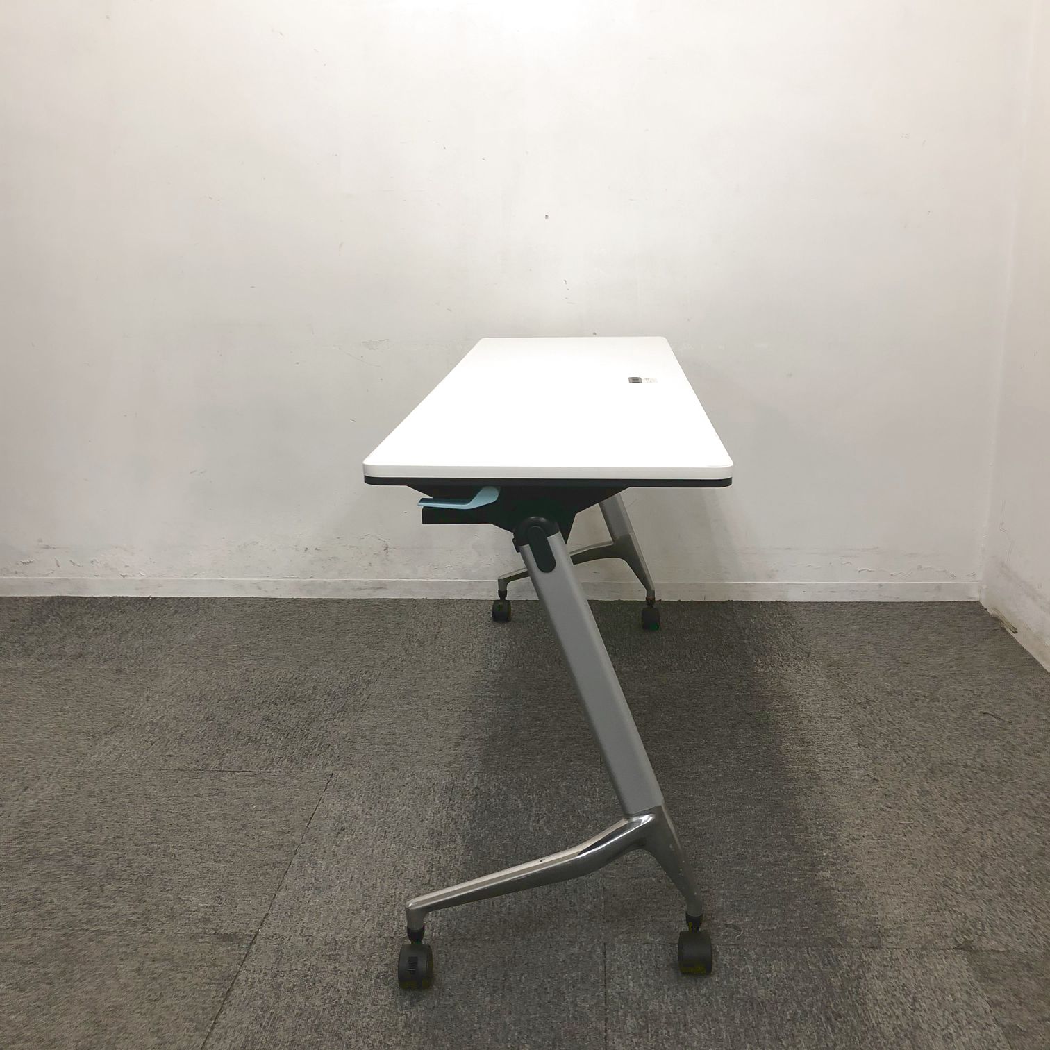 【折りたたみ収納が秀逸!スタイリッシュなデザインで高品質!】■ウチダ(UCHIDA)製 プラッテ(PLATTE)シリーズ サイドスタックテーブル W1500×D450㎜ ■キャスター付 ■ホワイト