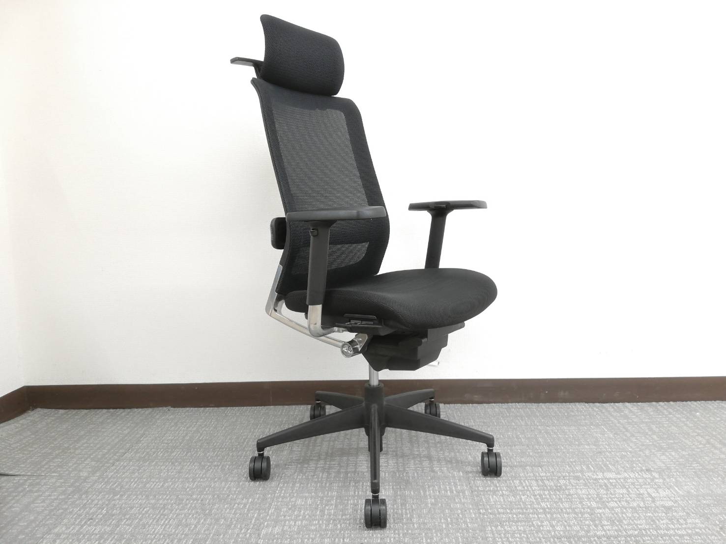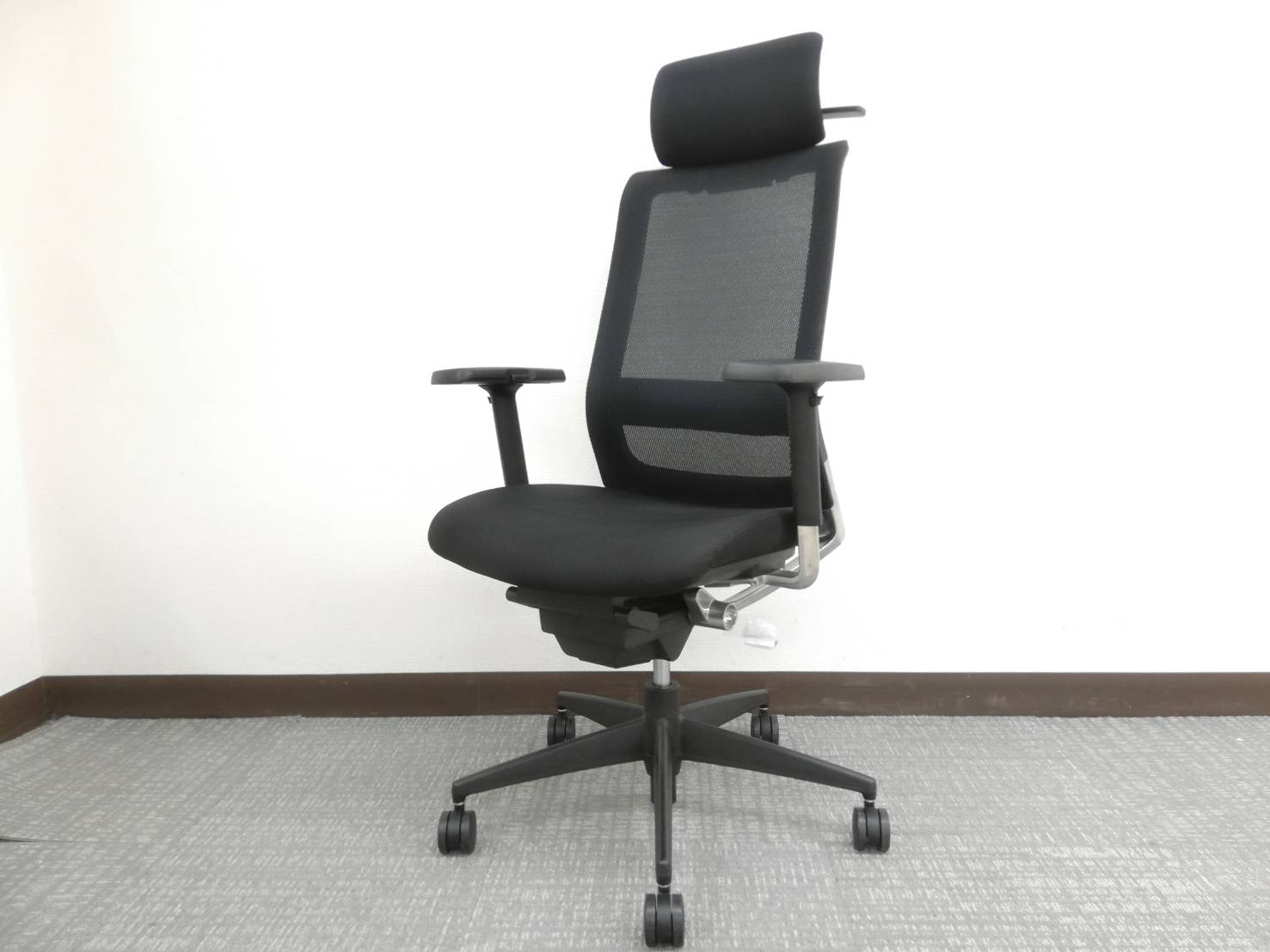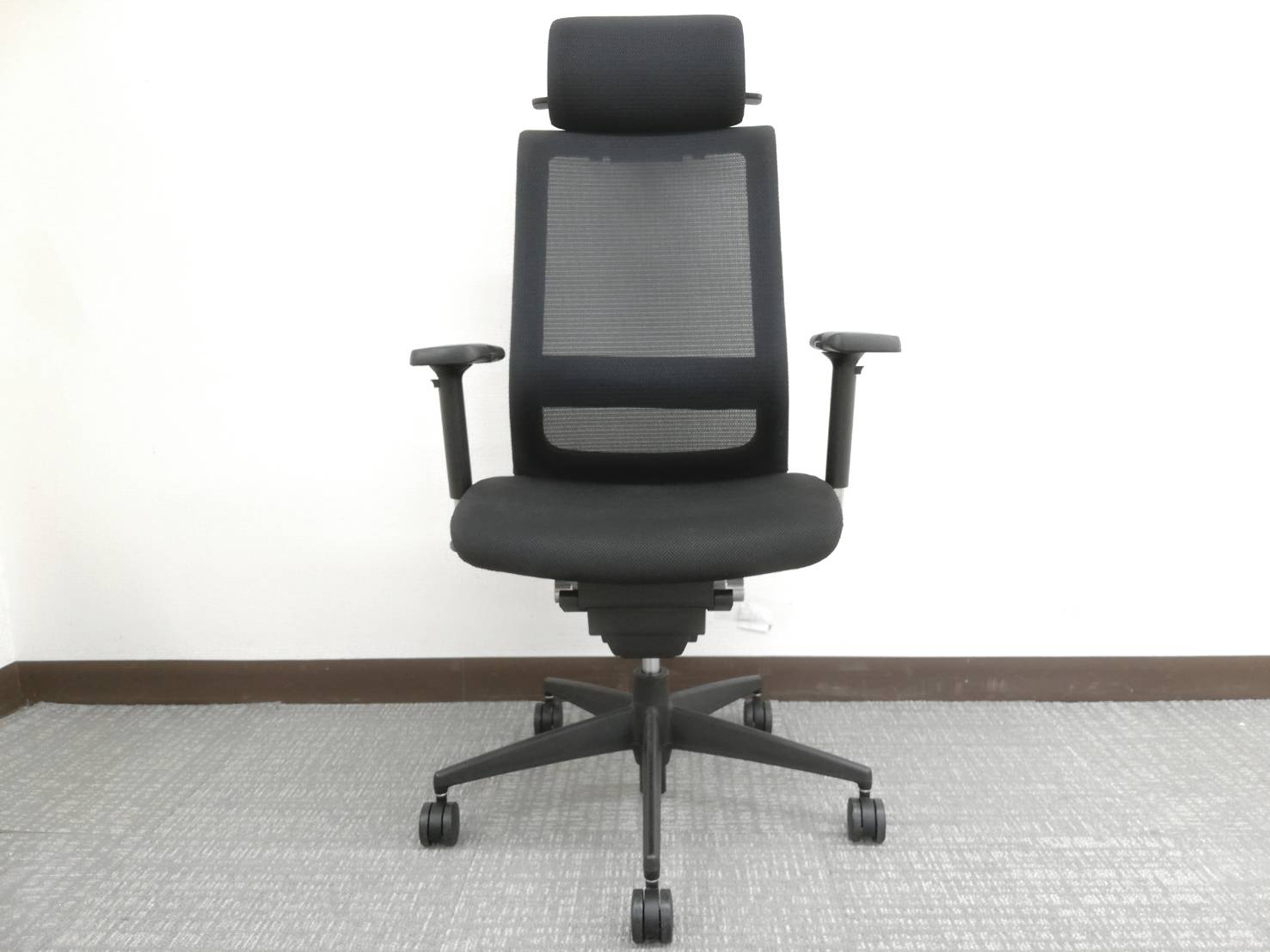 【磨き上げて状態良好】漢仕様オールブラックエアフォート(Airfort)ヘッドレスト&ハンバー付き蓮田入店※可動肘つき◆コクヨ製【RP】- 埼玉本店