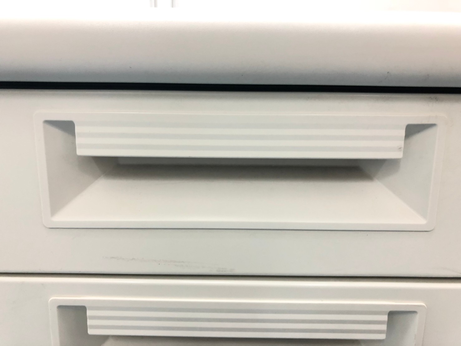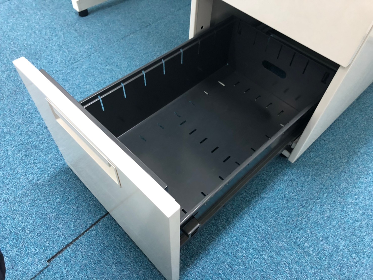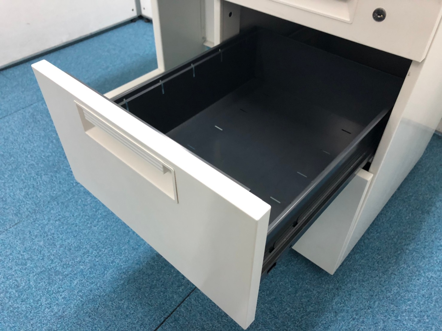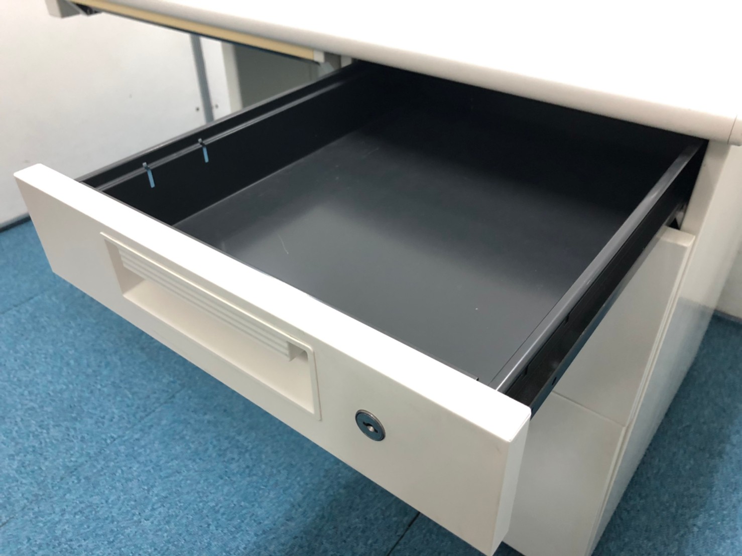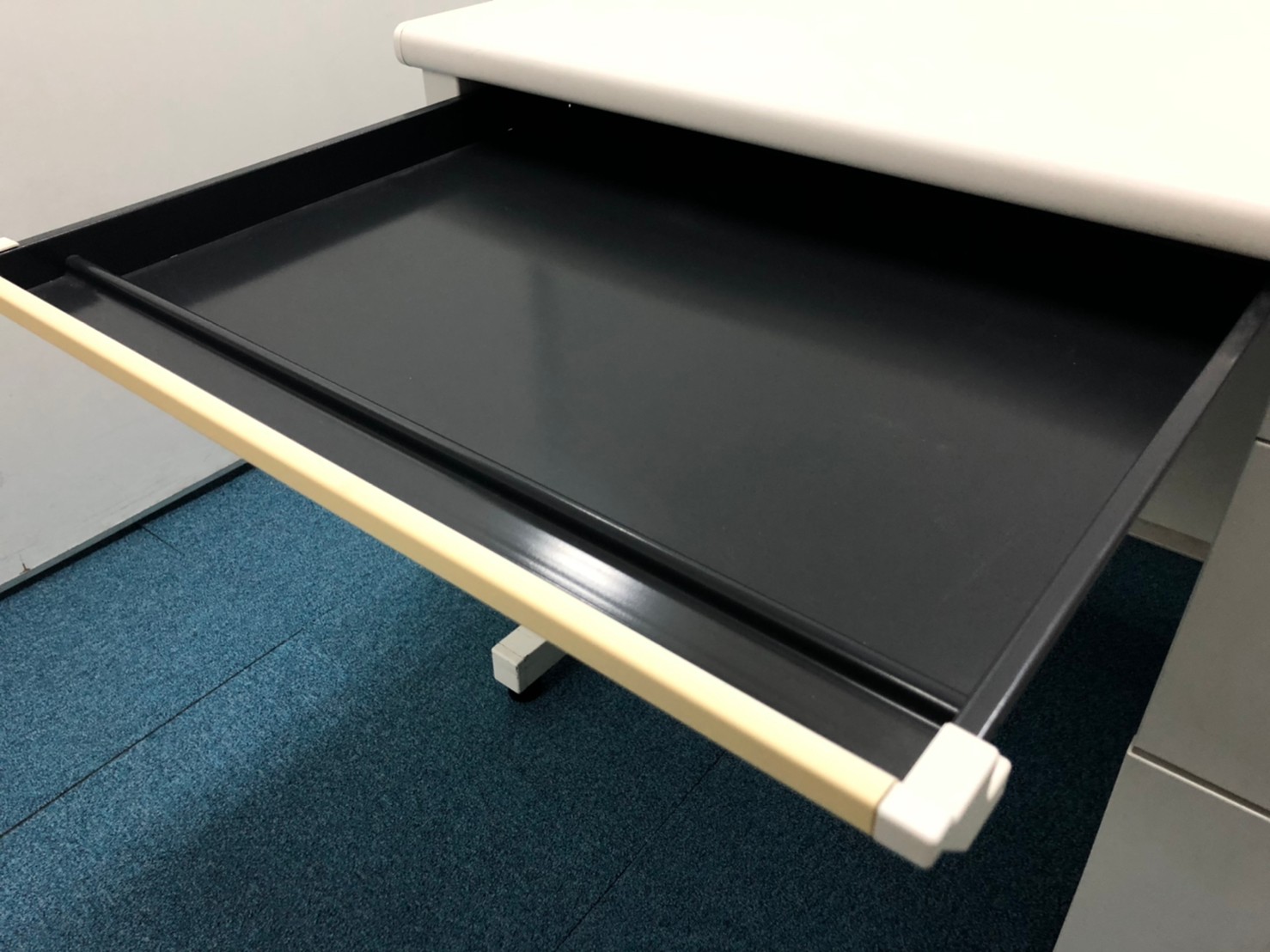 片袖机の為、右側には引き出しが付いており書類や筆記用具等も収納可能。