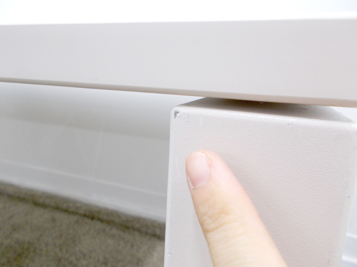 - 目立つ箇所あり傷・凹みが多数、深い傷・凹みが一部ある。(例、天板、幕板、棚板、サイド部分、脚部等にある。)