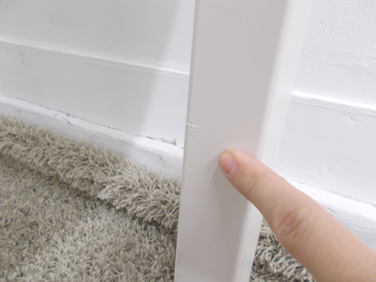 - かなり強い濃い黄ばみ・変色が商品全体にある。(例、天板、幕板、棚板、サイド部分、脚部等にある。)