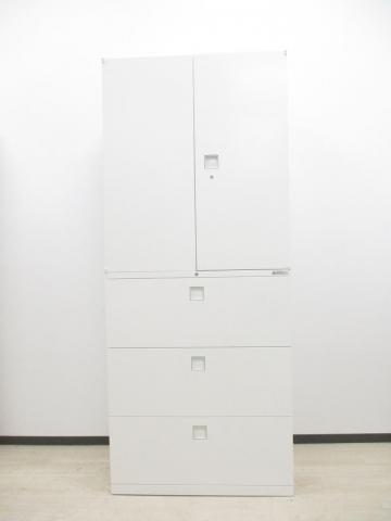 スライド式の扉+引き出しタイプの便利な書庫セットが入荷!使い勝手抜群のハイキャビネットが入荷! ■オカムラ/レクトライン/ホワイト 2枚引き戸+3段ラテラルキャビネット