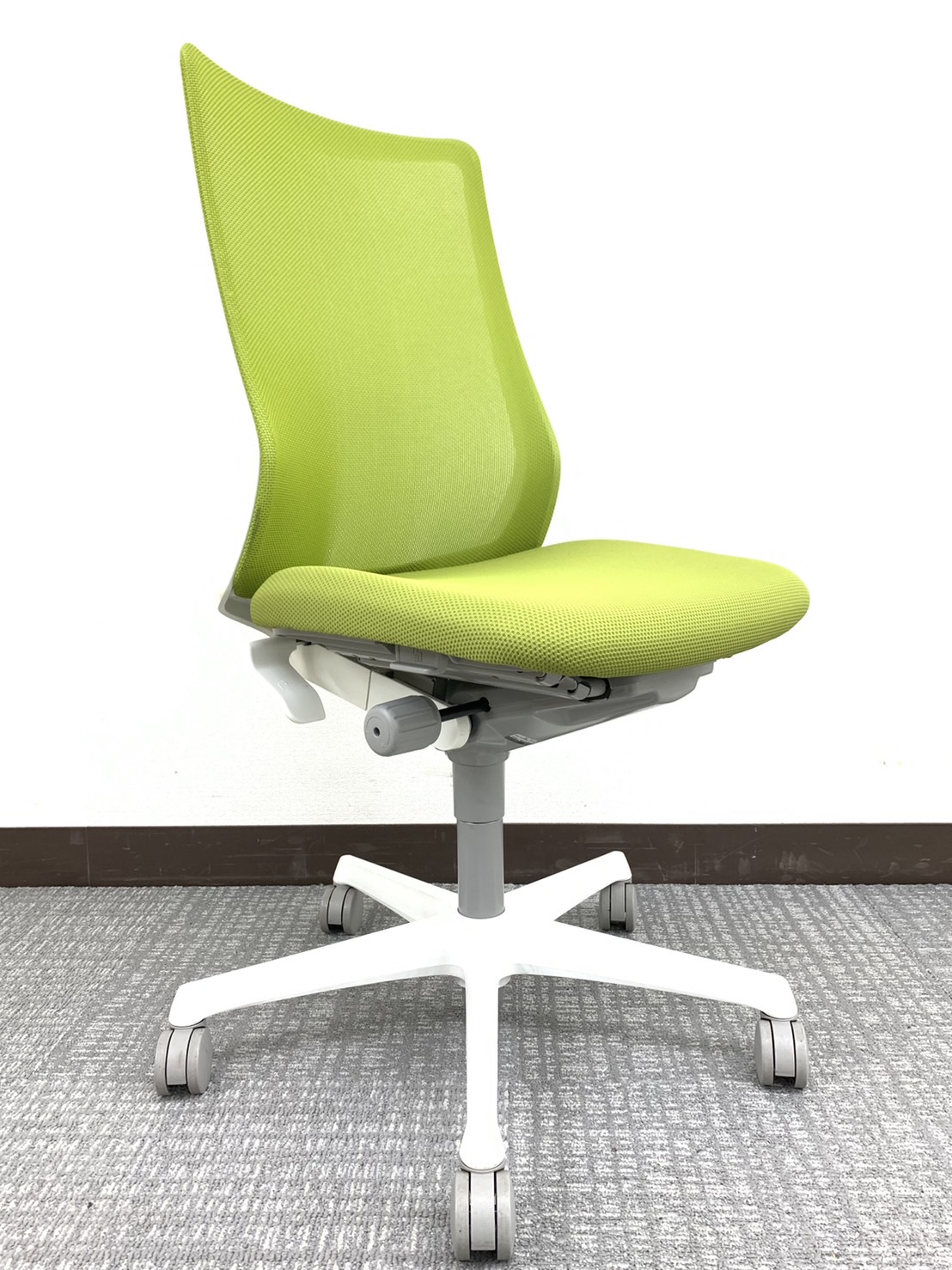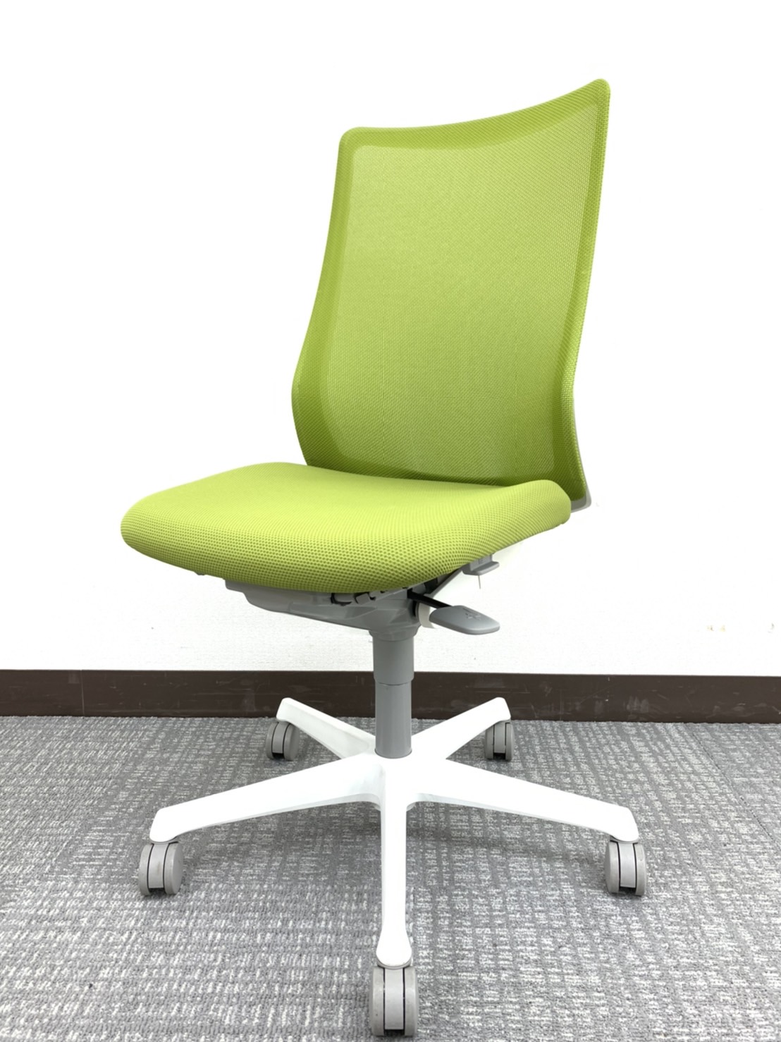 【2019年製】状態良好!ライムなグリーンやる気UPカラーフルーエント(Fluent)※ホワイトフレーム◆オカムラ製【RP】- 埼玉本店