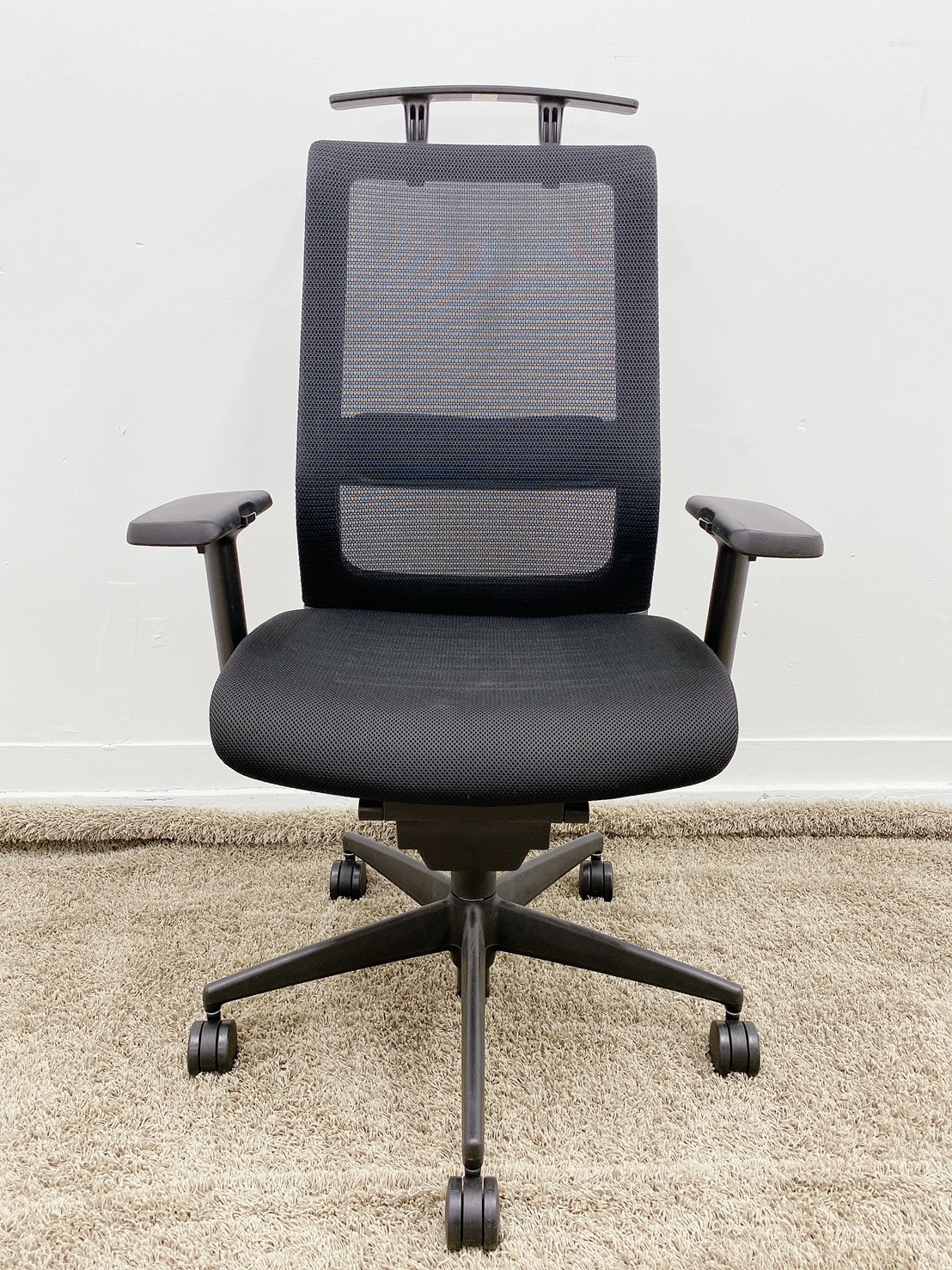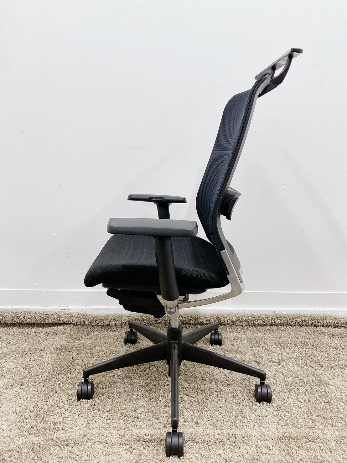 【スマートなデザインの上質チェア!】■コクヨ製 エアフォート 肘付ハイバックチェア ■ブラック ランバーサポート付き 可動肘
