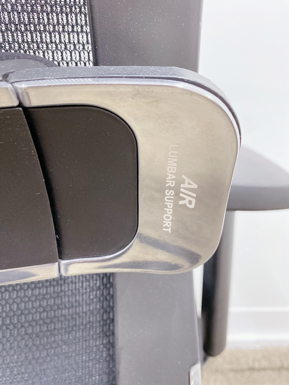 - 自由に変形し、力を分散させながら反発する空気の特性によって腰をサポート。ランバー部の前後幅は0~40mm、上下幅は100mmの調整が可能で、個人個人の異なる背骨形状にフィットします。