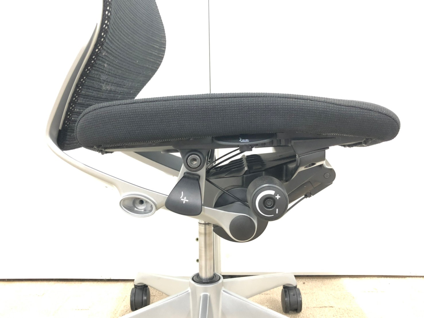 もちろん座り心地もコンテッサの直系ですから快適です。座面の素材はクッションとメッシュの2タイプあります。私、個人的には座面の中心部分でも外側でもテンションが変わらないクッション素材が、足を閉じても開いても快適なので推しです!"