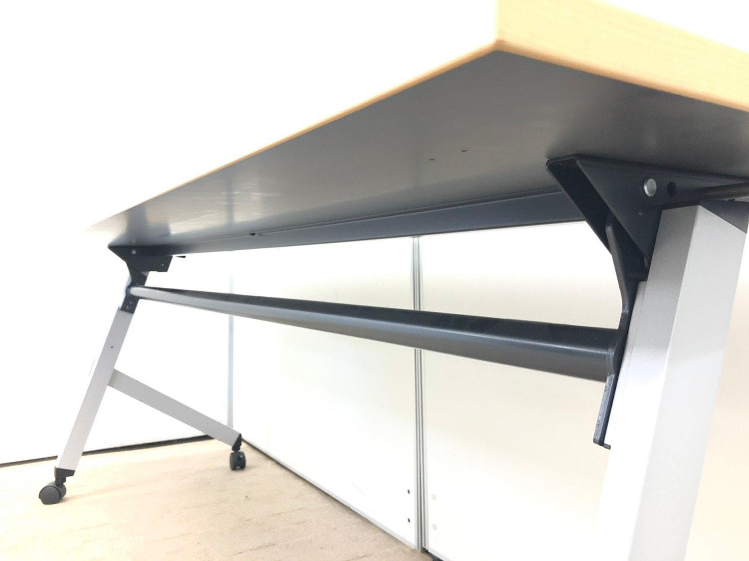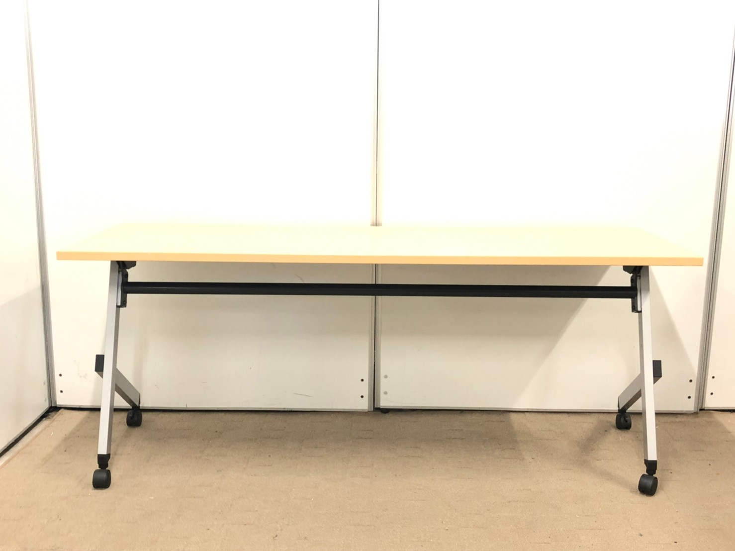 【幅1800サイズ】会議室やセミナーにおすすめです! 内田洋行/プラッテ/ナチュラル木目 キャスター付き 幕板付き テーブル 会議