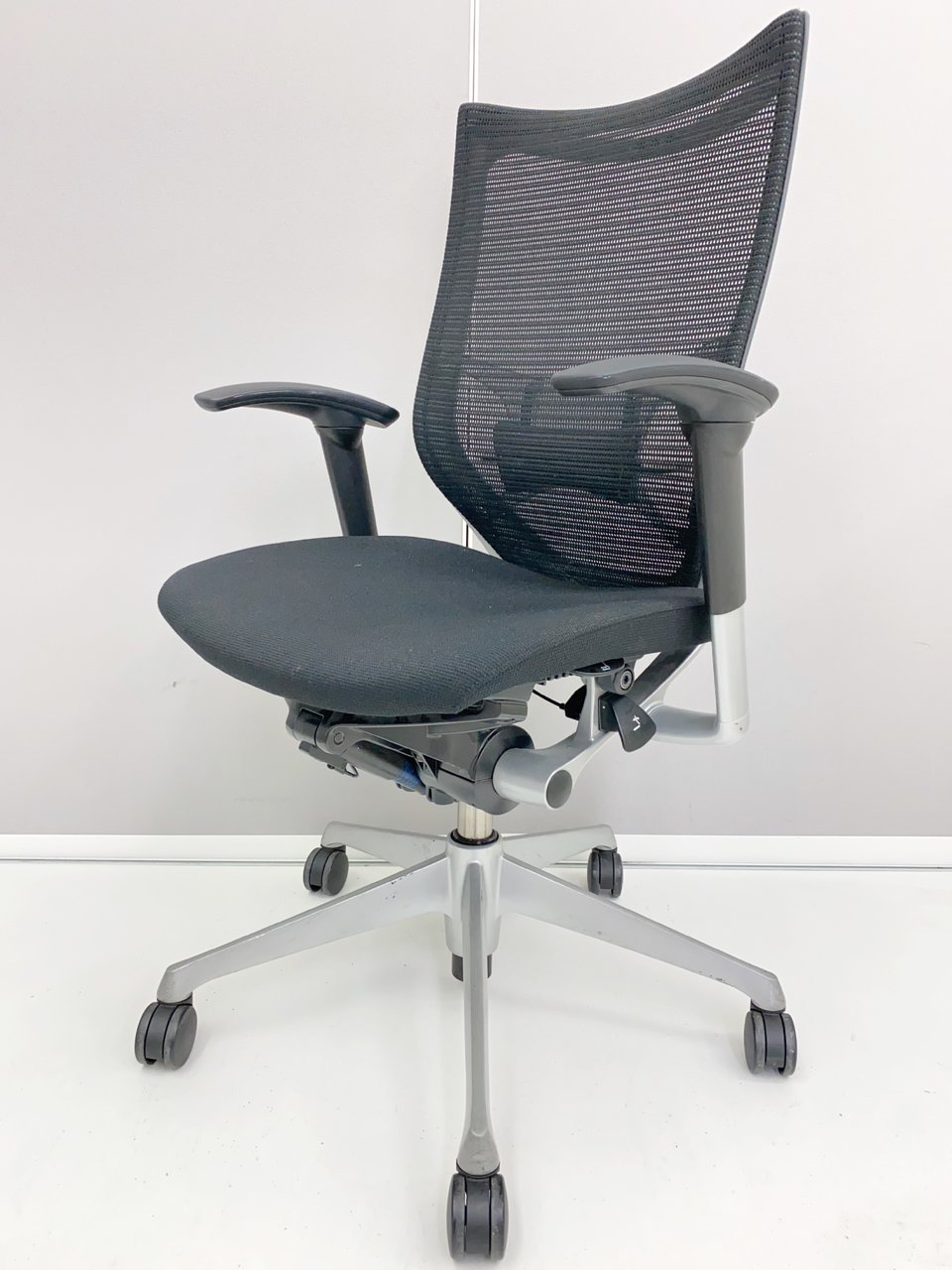 【長時間の着座でも疲れにくい!ベストなポジションが得られる先進設計!】■オカムラ バロンチェア 肘付 ブラック ハイバック シルバーフレーム ■良い椅子は腰を守る投資です!【Okamura Baron】