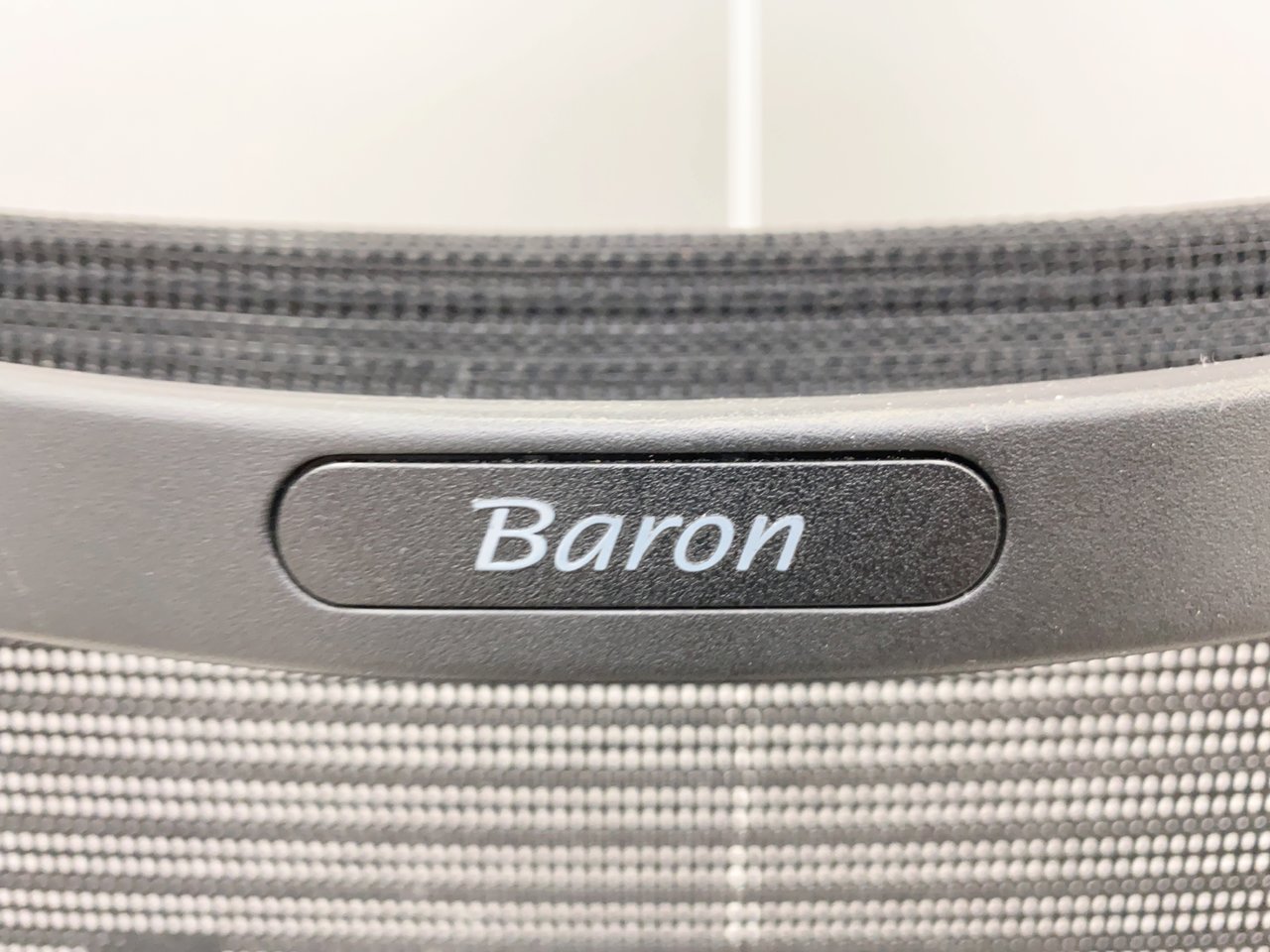 発売当時、既に人気を博していたオカムラの高級チェア、コンテッサから手元で座高調整ができるスマートオペレーション機能を取り除くなどしてリーズナブルにしたのがバロンです。その際に少しだけコンパクト化されました。そのことが、日本人の体格、日本のオフィス、家庭環境に適し、国内で多くのシェアを獲得する要因の一つになったのではないかと思います。
