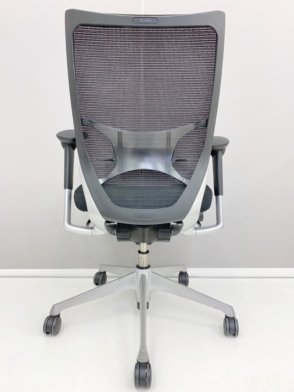 【硬めの座面が大人気!国産メッシュチェアの代表格!オフィスの執務室、会議室におすすめ!】■オカムラ(okamura)製 バロン(Baron)チェア 肘付き ハイバック 背面メッシュ ■固定肘 ■色:ブラック【IB】