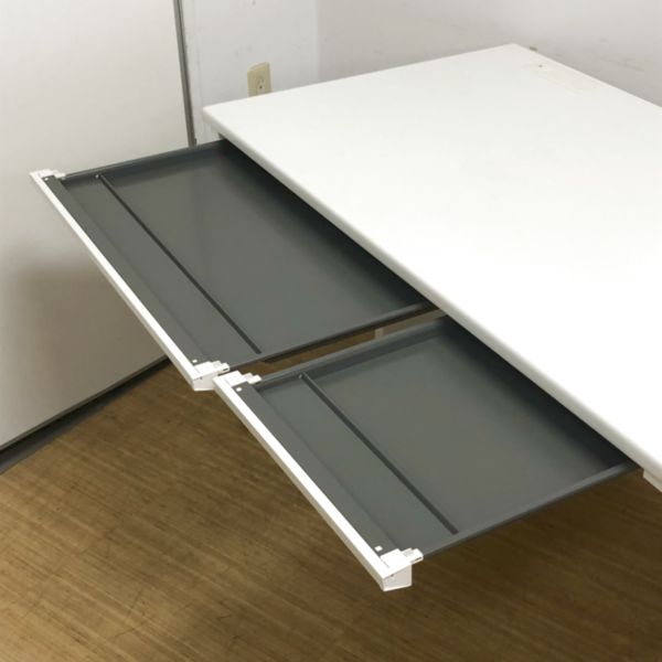 【残り1台売切価格】ホワイト平デスクがお値打ち 配線ダクト付きでケーブルリンクに配慮 フック付きもポイント〇- 名古屋千種店