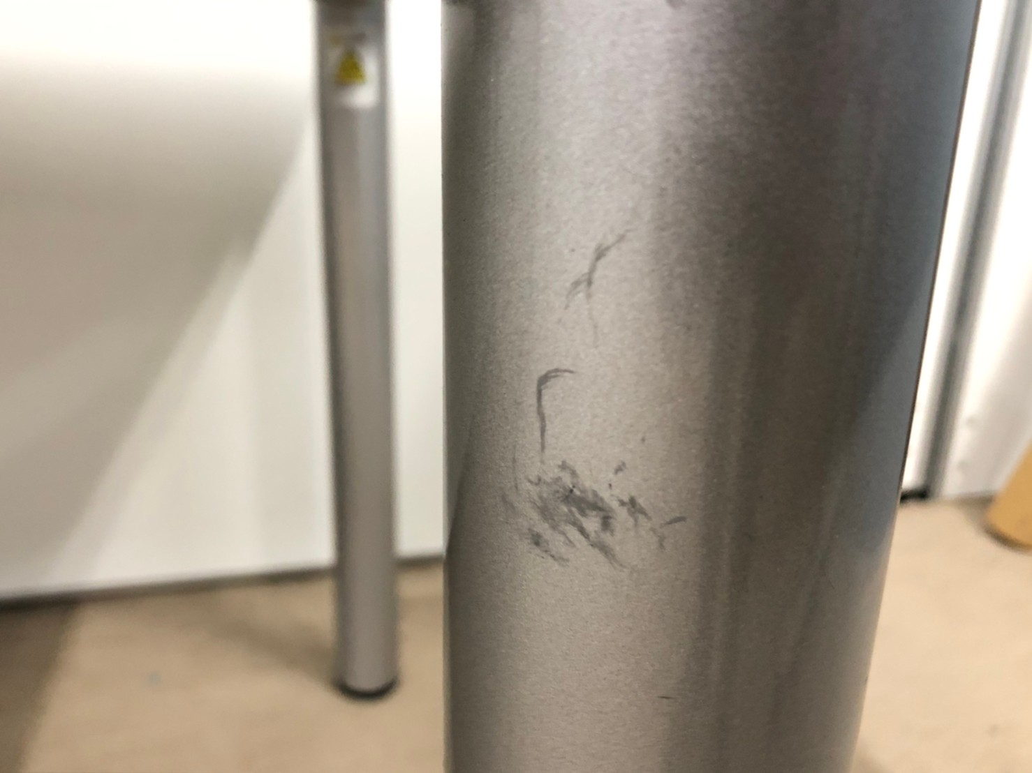 - 多数不具合あり天板歪み、アジャスター無し、キャスター使用不可ようなそのテーブルの本来の効用を果たすための機能以外の多数が使用不可な状態。(例、キャスターロッ ク機能使用不可、棚板無し等がある。)