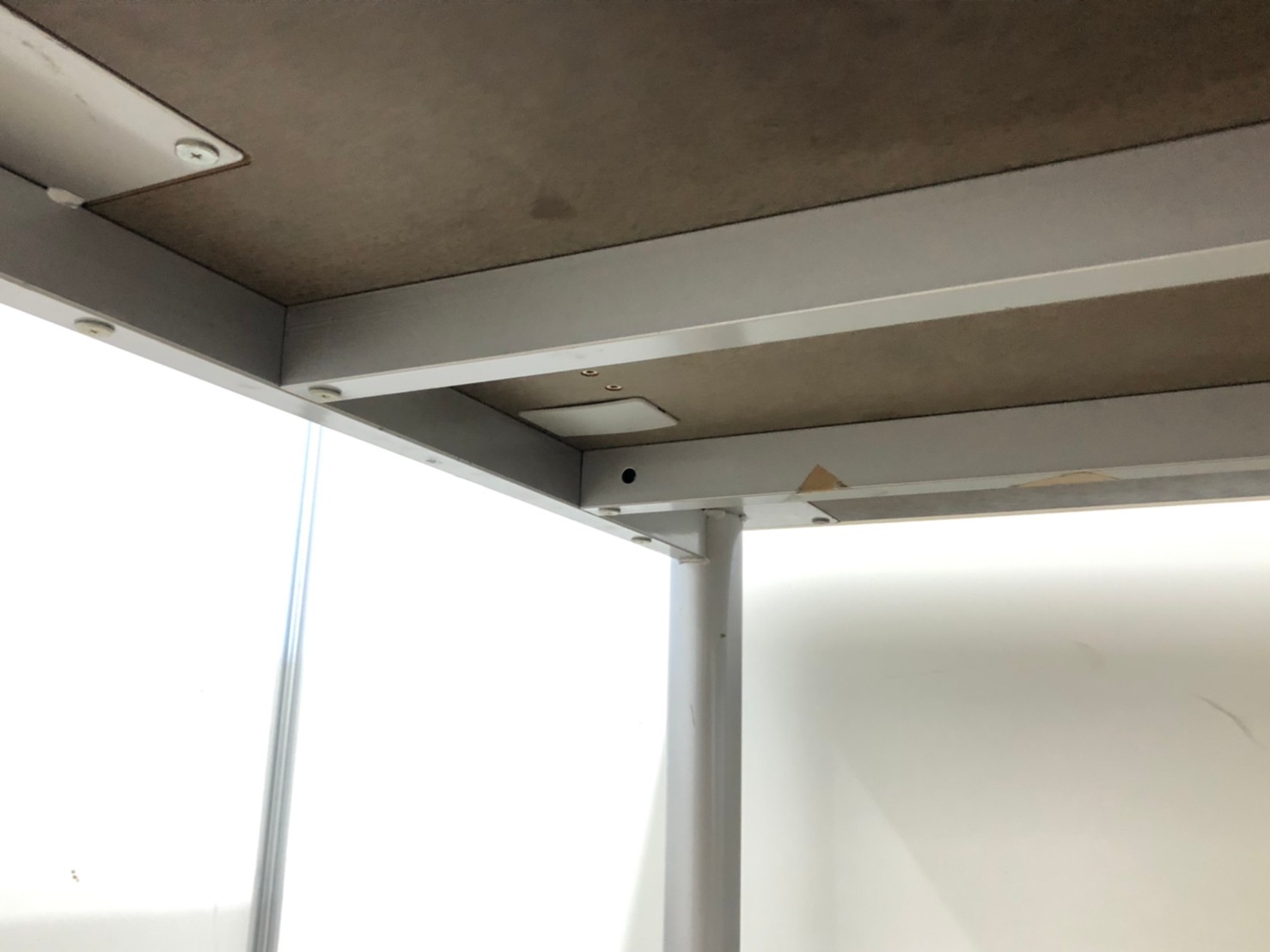 - 一部不具合あり天板歪み、アジャスター無し、キャスター使用不可ようなそのテーブルの本来の効用を果たすための機能以外の一部が使用不可な状態。(例、キャスターロッ ク機能使用不可、棚板無し等がある。)