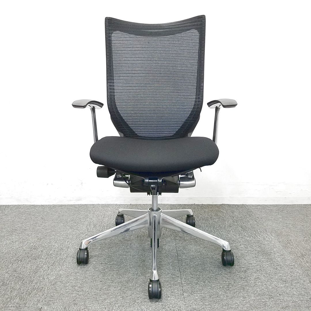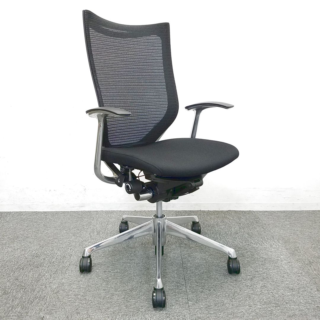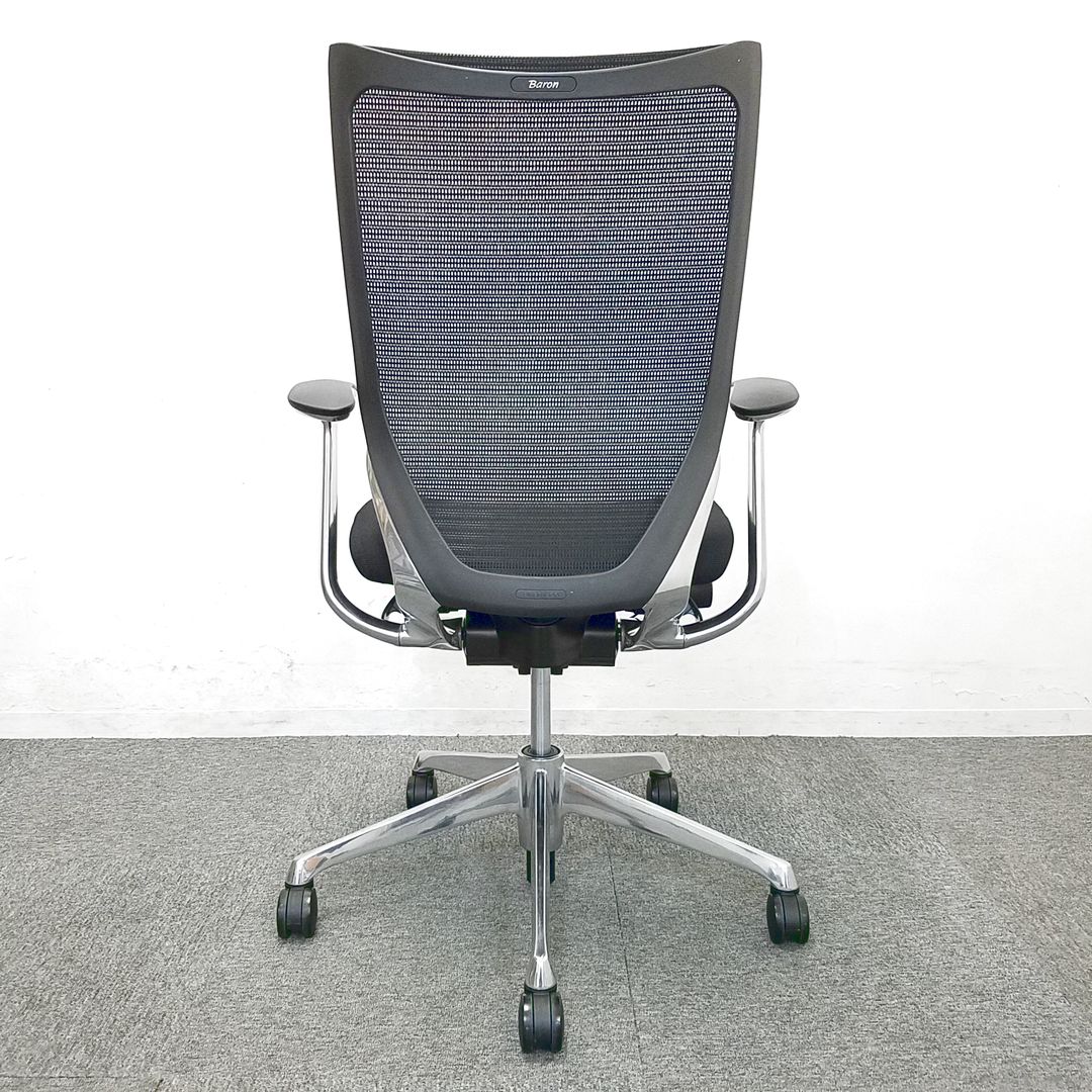 オカムラ バロン ハイバックモデル 背:メッシュ 座:クッション 張地:ブラック 脚:ポリッシュ アジャストアーム搭載