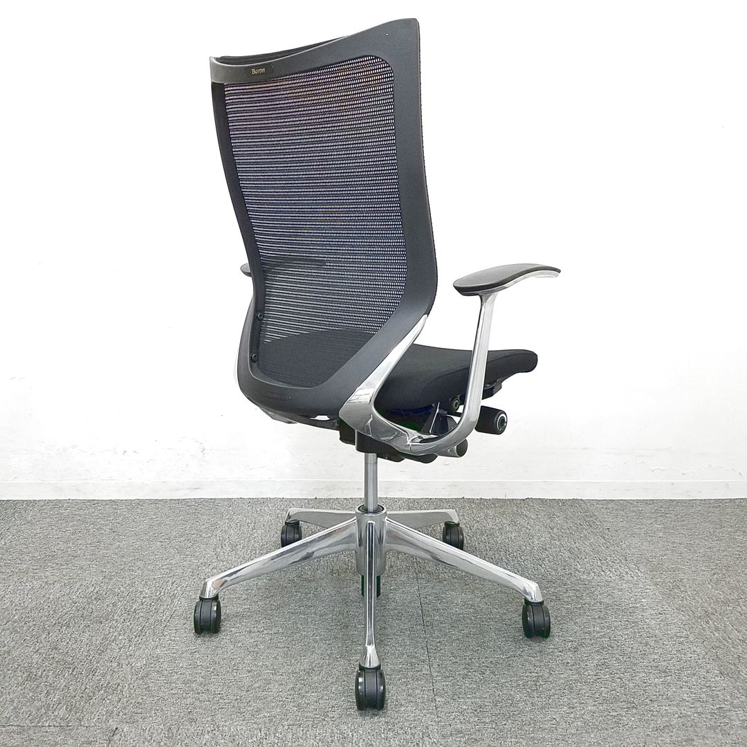 【硬めの座面が大人気!国産メッシュチェアの代表格!オフィスの執務室、会議室におすすめ!】■オカムラ(okamura)製 バロン(Baron)チェア 肘付き ハイバック 背面メッシュ ■固定肘 ■色:ブラック【IB】