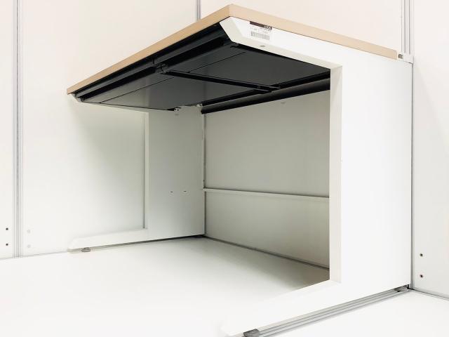 - 対向配線も横配線も自在なケーブリングが可能。幕板内側に余長ケーブルやOAタップを収納できる配線ダクトを標準装備。