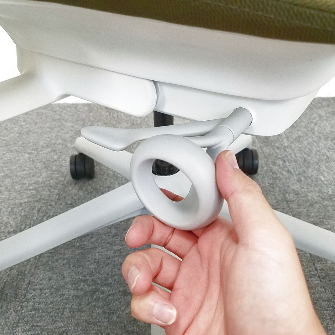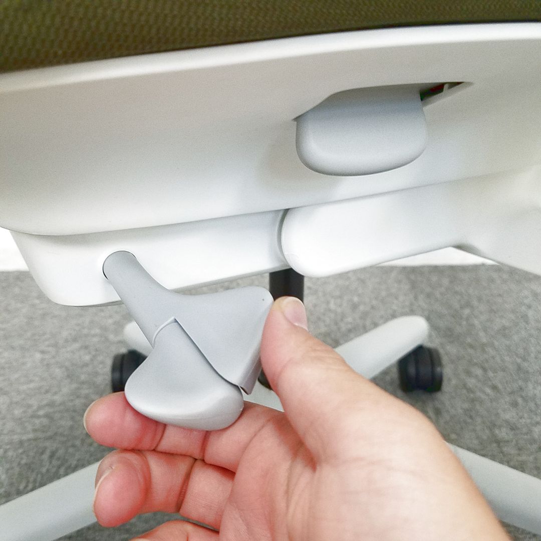 - 座ったまま、レバー操作一つで、簡単に座面を前傾できます。前傾姿勢を取ることが多いデスクワーカーに最適です。