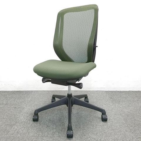 オカムラ製 シルフィ ライムグリーン ブラックフレーム 背面メッシュ ハイバック 樹脂脚 前傾チルト機能付き! オカムラ製品で最も人気を集める高機能メッシュチェア! 肘無しハイバックチェア!!