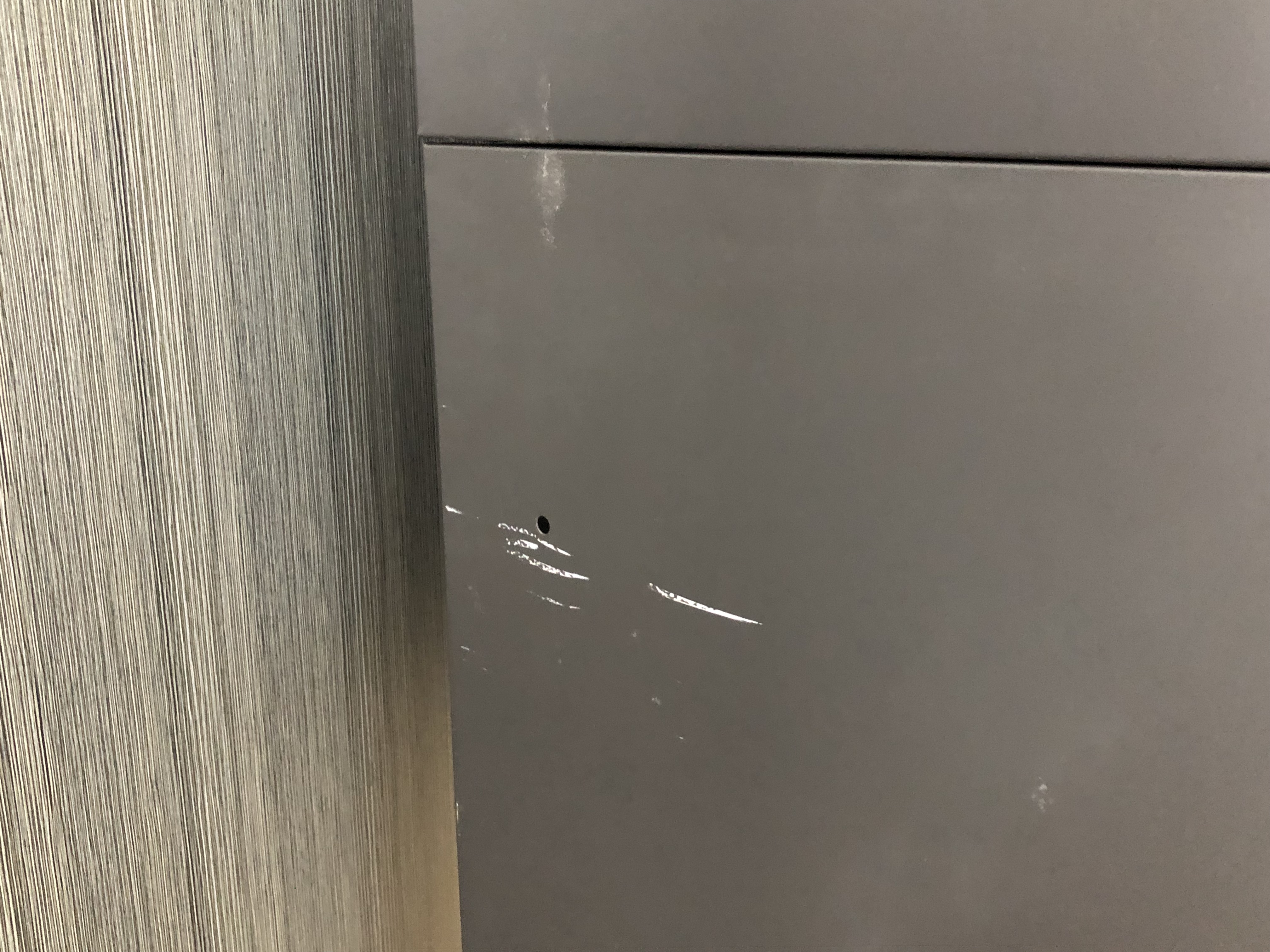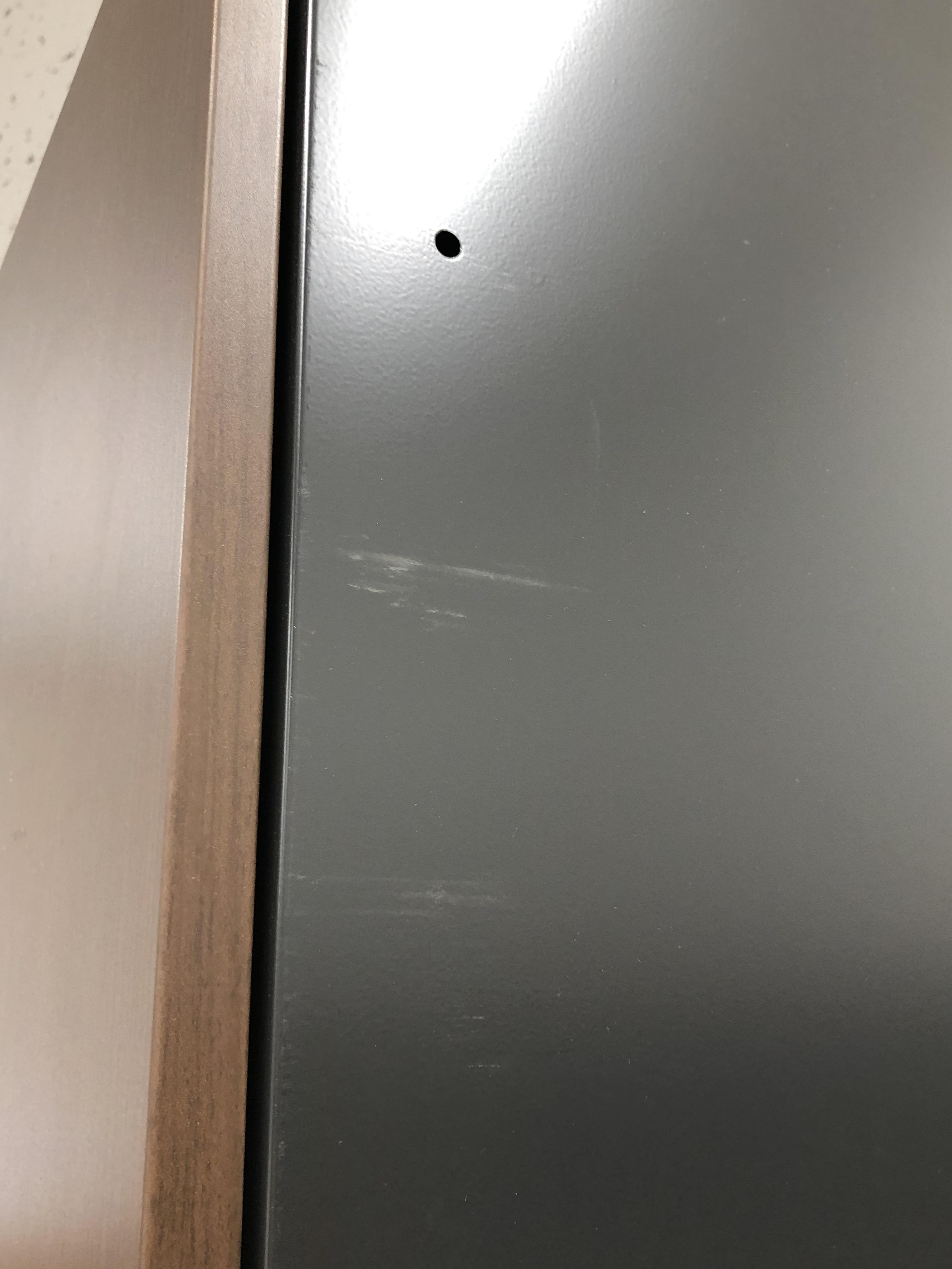 - 目立つ箇所あり傷・凹みが多数、深い傷・凹みが一部ある。(例、天板、正面、背部、サイド部分にある。)