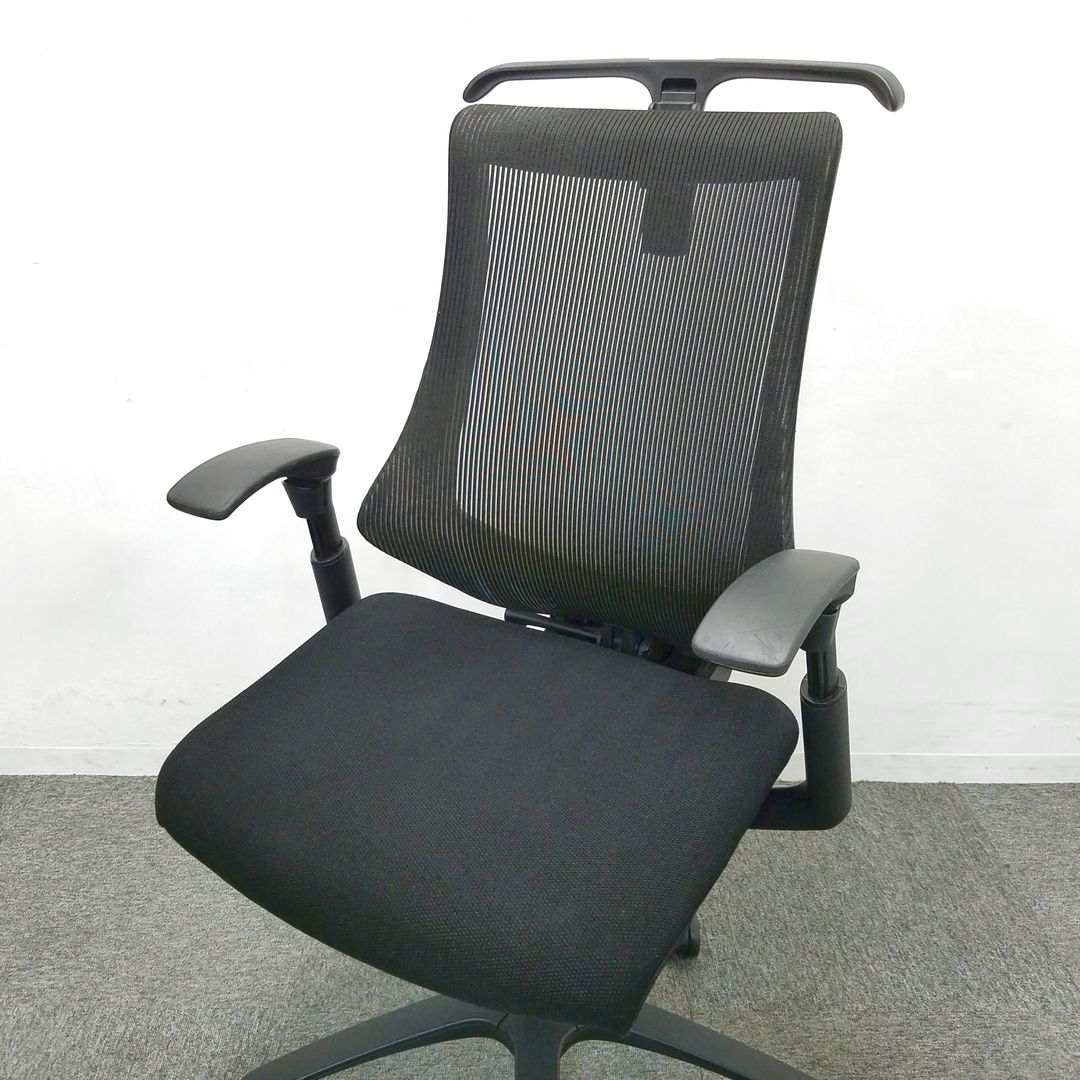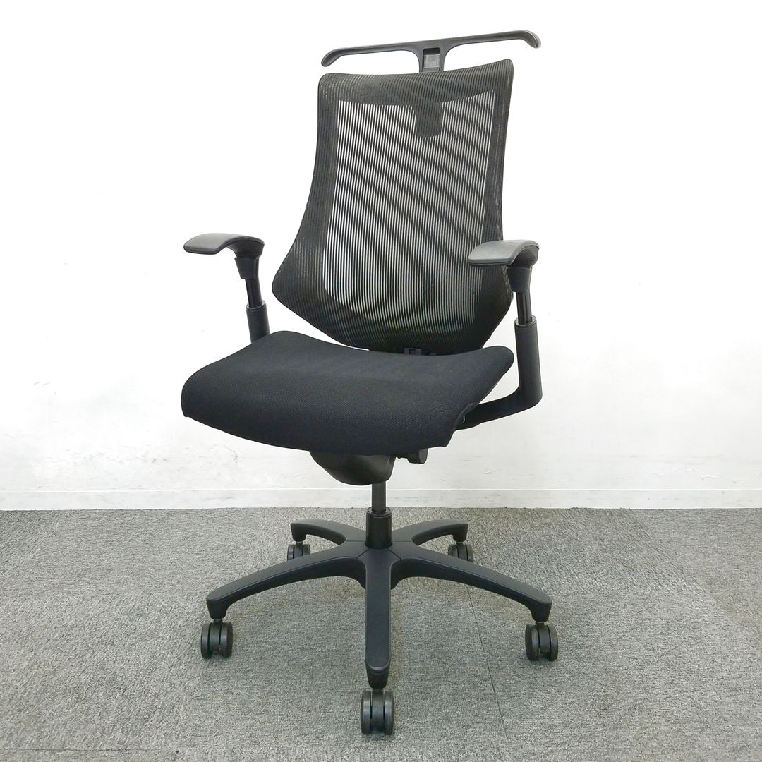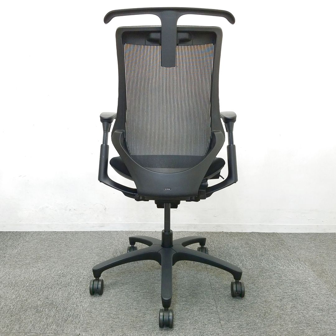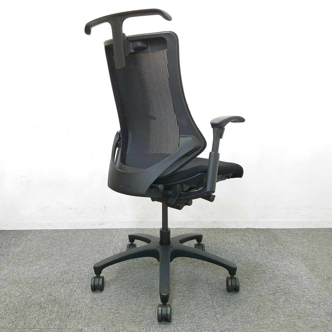 【三次元フォルムが腰にフィット!】希少なエラストマータイプ! ■イトーキ製 エフチェア 肘付 ブラック ハイバック ■姿勢の変化にフレキシブルに対応!