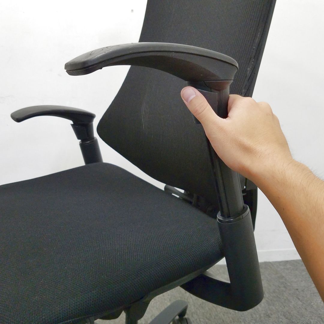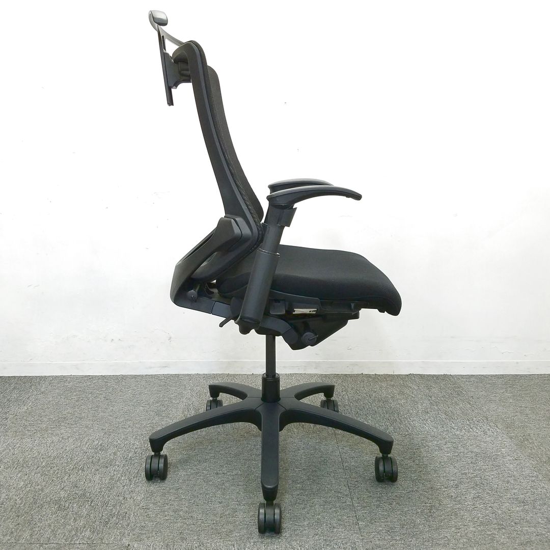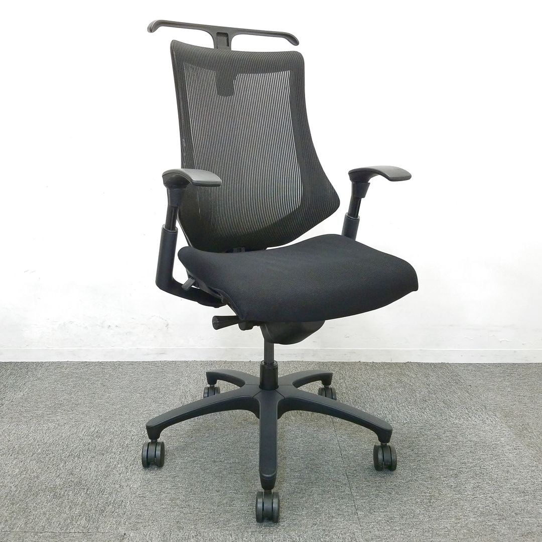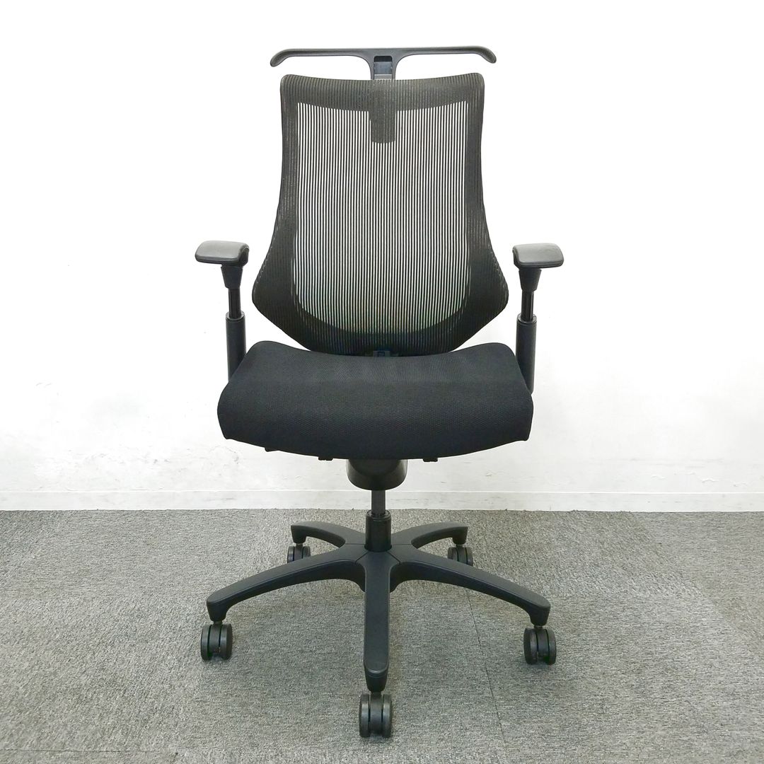 【三次元フォルムが腰にフィット!】希少なエラストマータイプ! ■イトーキ製 エフチェア 肘付 ブラック ハイバック ■姿勢の変化にフレキシブルに対応!