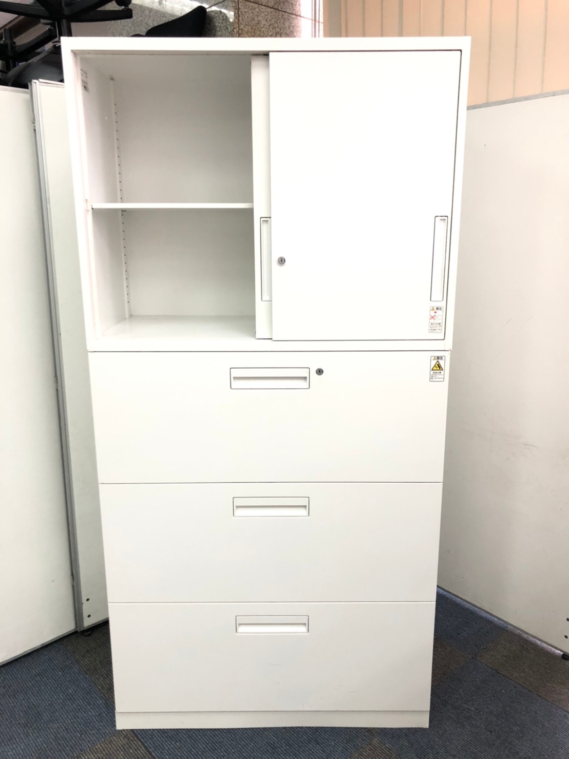 【オフィスの書類をまとめて整理!引き違いと引き出し式の書庫セット!】■コクヨ(KOKUYO)製 エディア(EDIA) 引き違い+3段ラテラル 上下書庫セット 2枚扉 H2150㎜ ■シリンダー錠 ■ホワイト