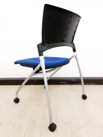 【関東倉庫在庫品】【フレキシブルに使える!平行ネスティングで省スペース化!】■イトーキ(ITOKI)製 マノス(MANOSS) ネスティングチェア ミーティングチェア ■背パッド付 ■キャスター付 ■ブルー【弊社使用欄:A01014525】【ECBMC】