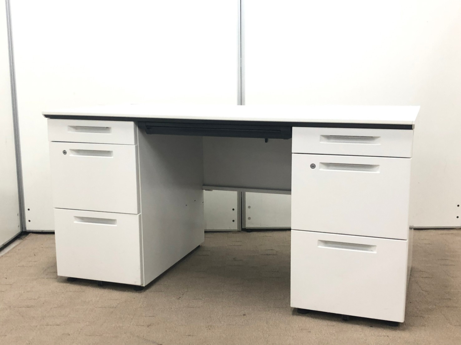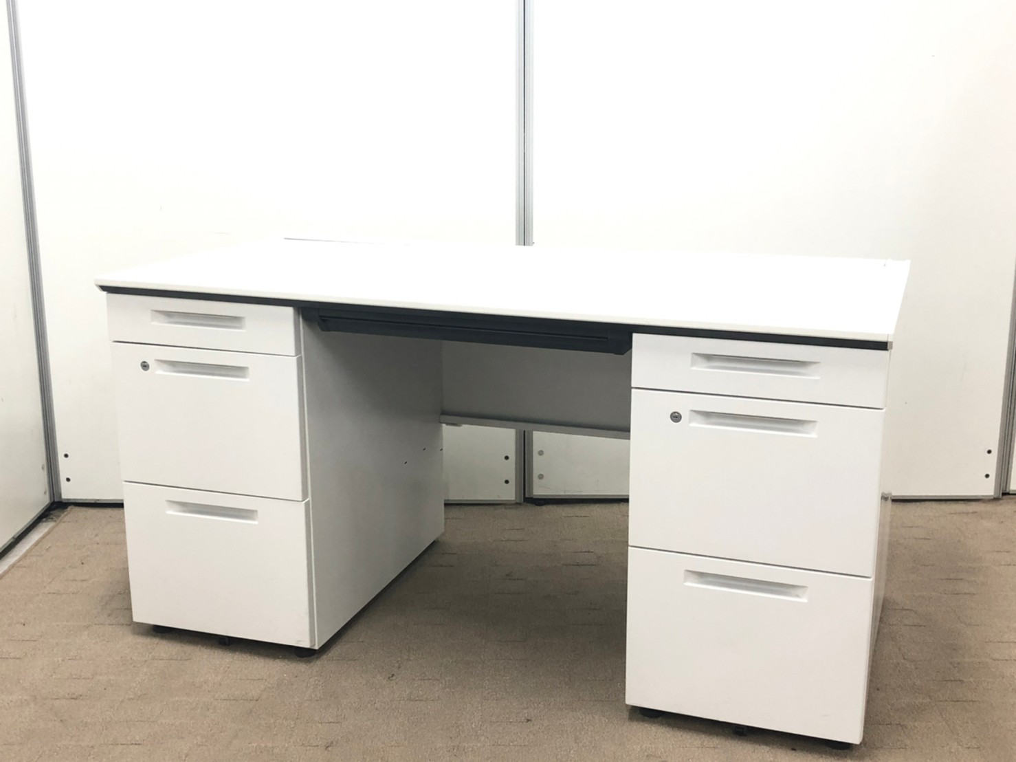 【D650のレアサイズ!】【収納スペース充実・机上をスッキリ整理!上長席にもオススメ!】■コクヨ(KOKUYO)製 アイエス(iS)シリーズ 両袖机 A4タイプ W1400×D650㎜ ■シリンダー錠 ■ホワイト