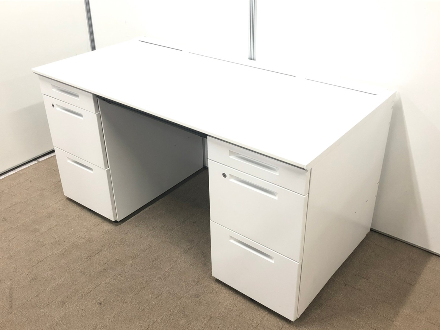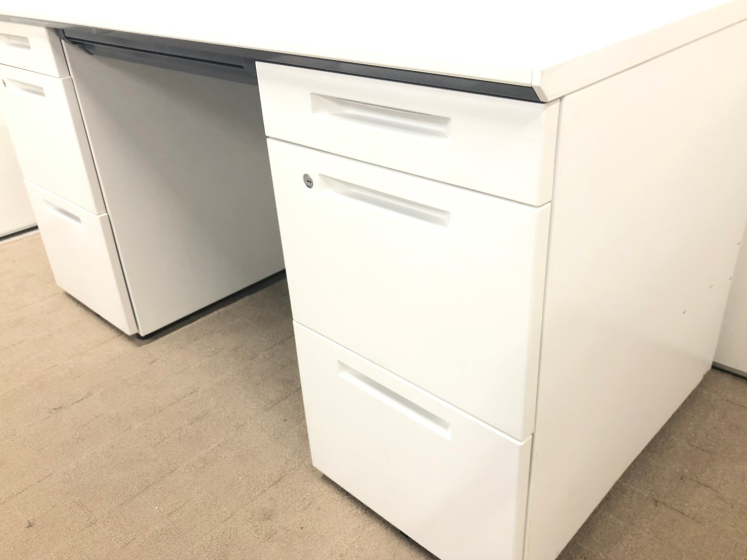 【在庫セール品・1台限定】【T11】■コクヨ(KOKUYO)製 アイエス(iS)シリーズ 両袖デスク W1400mm ■シリンダー錠 ■ホワイト【幅広いワークスペースで上長席にもオススメ! 収納スペース充実! 机上をスッキリ整理!】