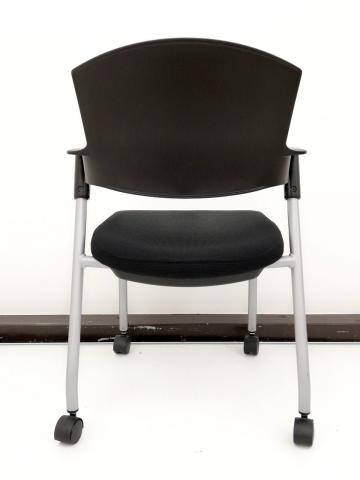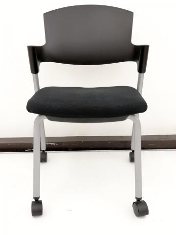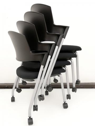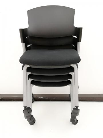 【シンプルスマートなスタッキングチェア!分厚いクッションで長時間でも快適な座り心地!】■スタッキングチェア 肘付ミーティングチェア ■固定肘 ■キャスター付 ■ブラック ■背面樹脂/コクヨ(KOKUYO/プロッティ