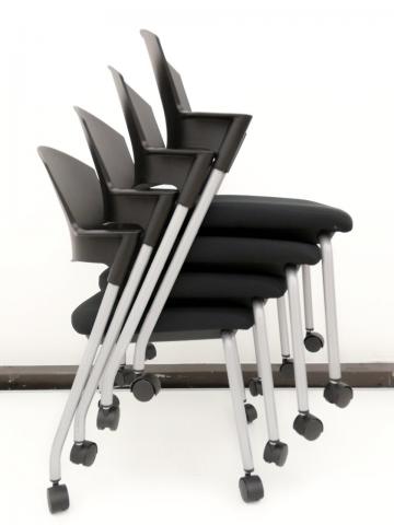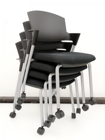 【セット商品(チェア×4脚)】【シンプルスマートなスタッキングチェア!分厚いクッションで長時間でも快適な座り心地!】/オススメ(おすすめ) /人気商品【弊社使用欄:A01037619】■スタッキングチェア 肘付ミーティングチェア ■固定肘 ■キャスター付 ■ブラック ■背面樹脂/コクヨ(KOKUYO/プロッティ