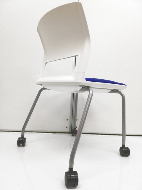 【爽やかな印象の青×白】簡易ミーティングスペースに最適なスタッキングチェア【UCHIDA】- 在庫数