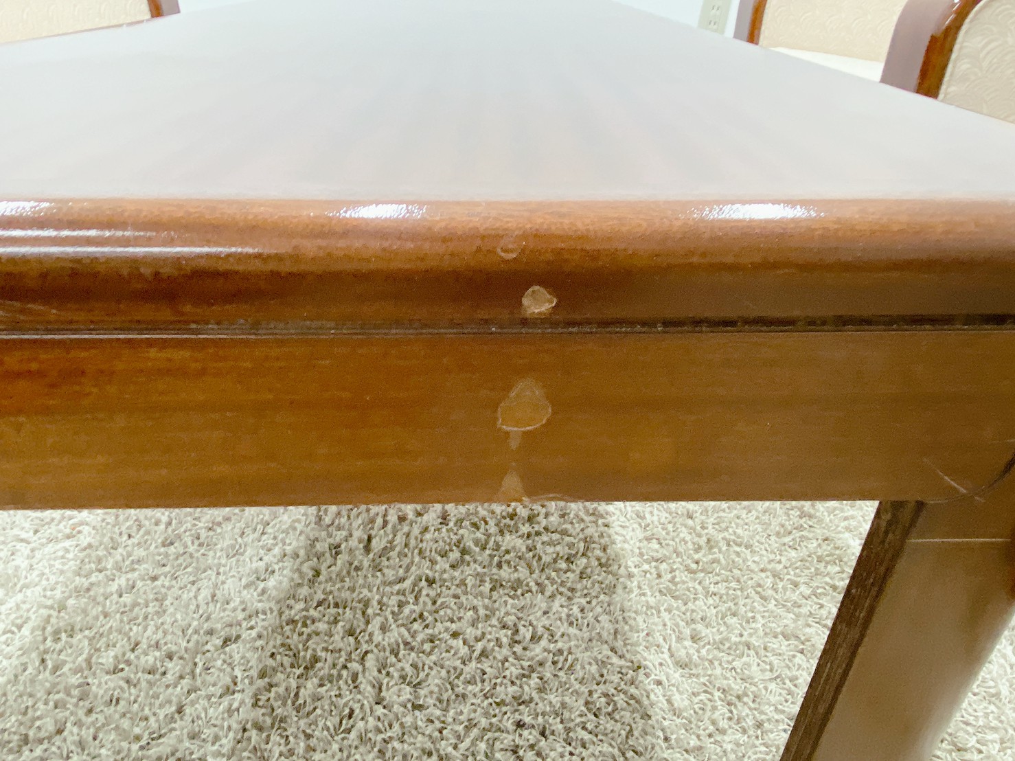 - 若干ありソファの場合、破け、ホツレ、へたり、しわ等が一部ある。(例、背もたれ、肘かけ、座面等にある。)センターテーブルの場合、傷・凹みが一部ある。(例、天板、 脚にある。)