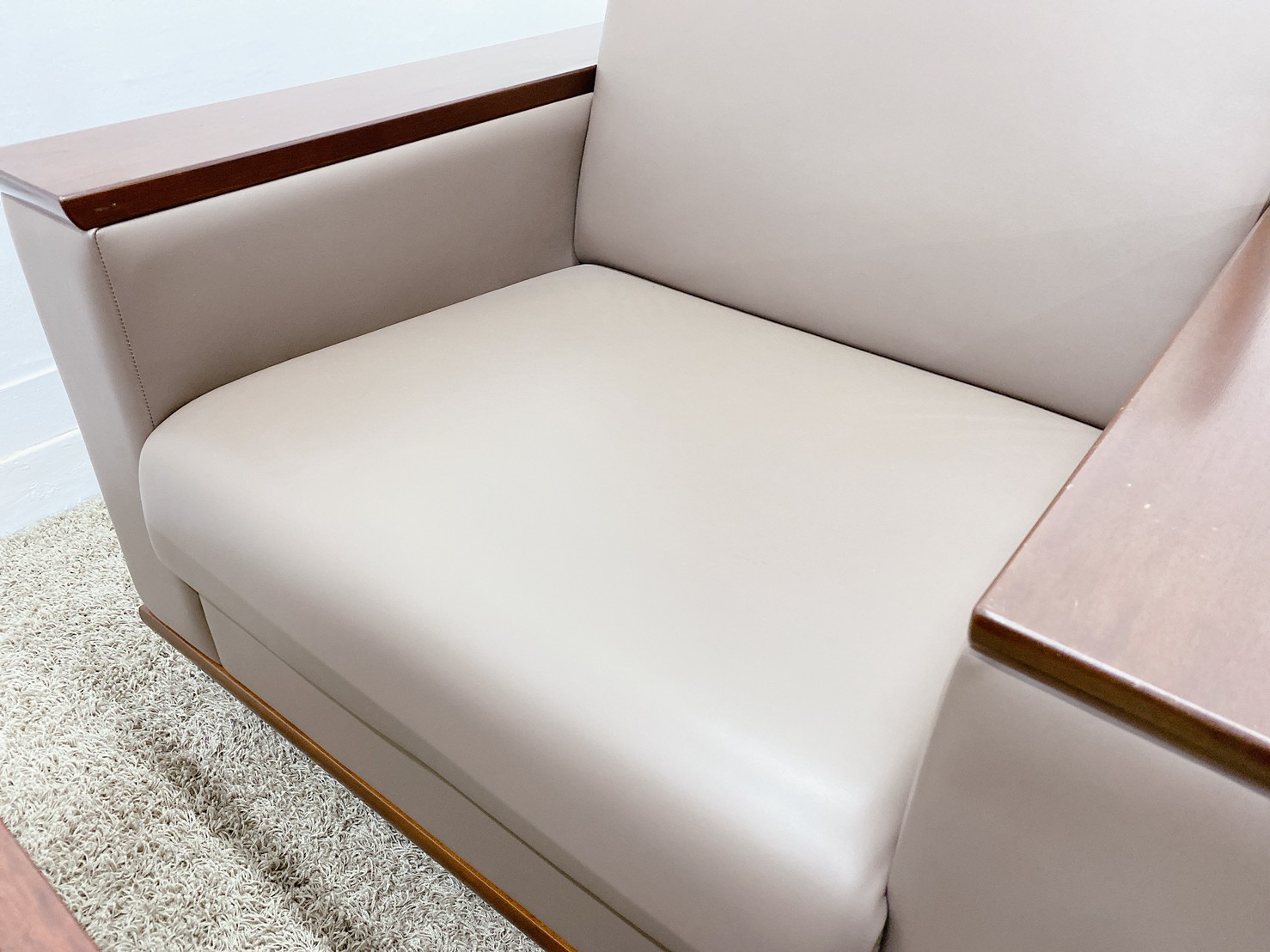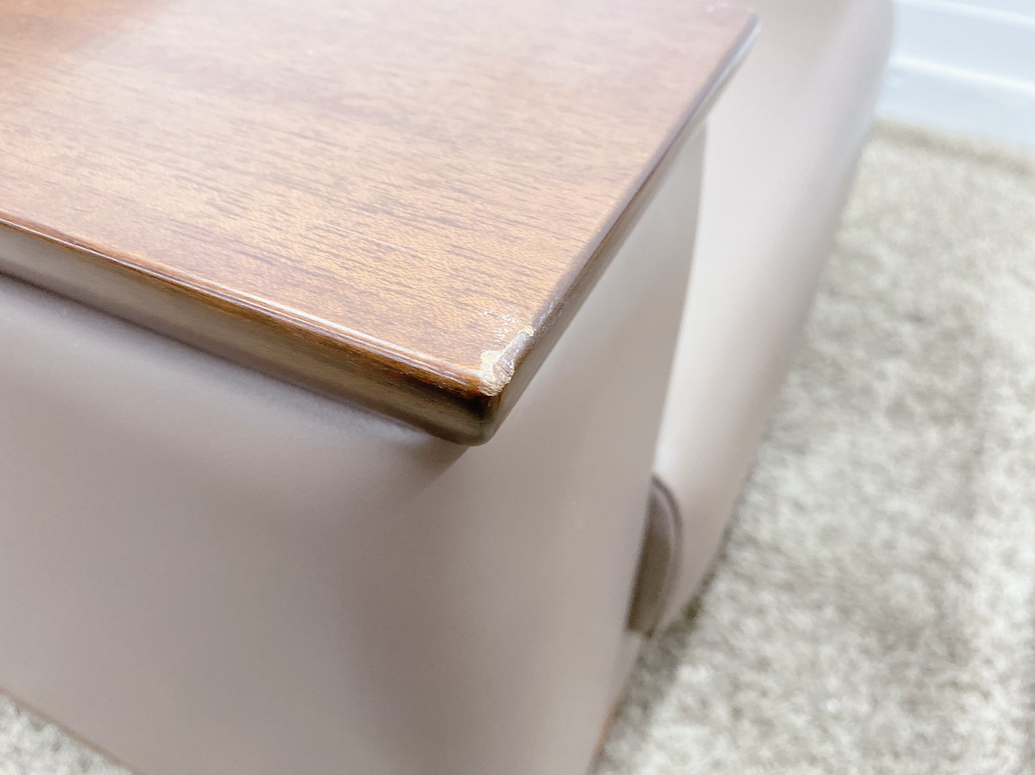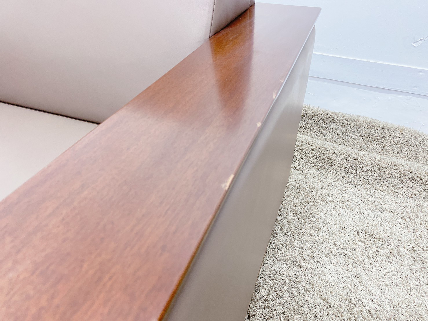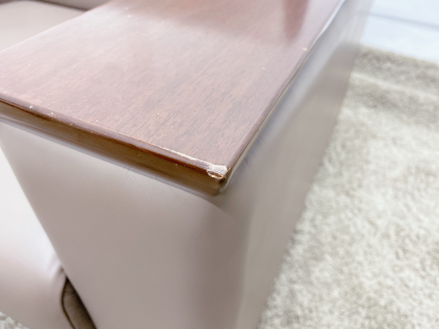 - あり黄ばみ・変色が広い範囲にうっすらある、または濃い黄ばみ・変色が一部ある。(例:三人用ソファ、二人用ソファ、一人用ソファの場合、背もたれ、肘かけ、座面等、 センターテーブルの場合、天板、脚にある。)