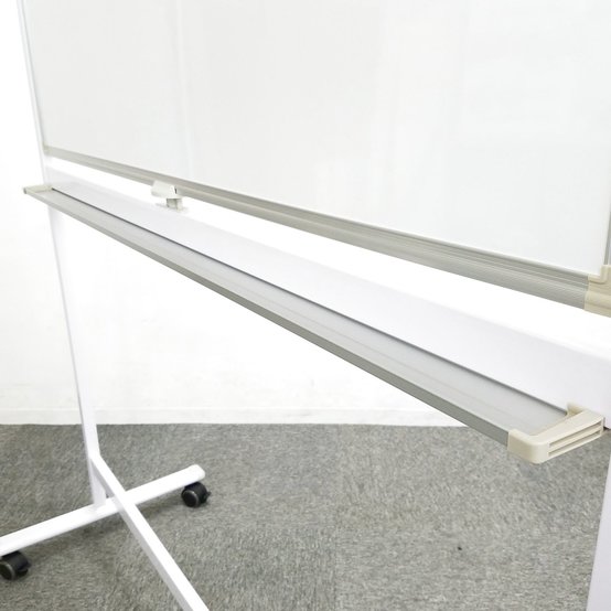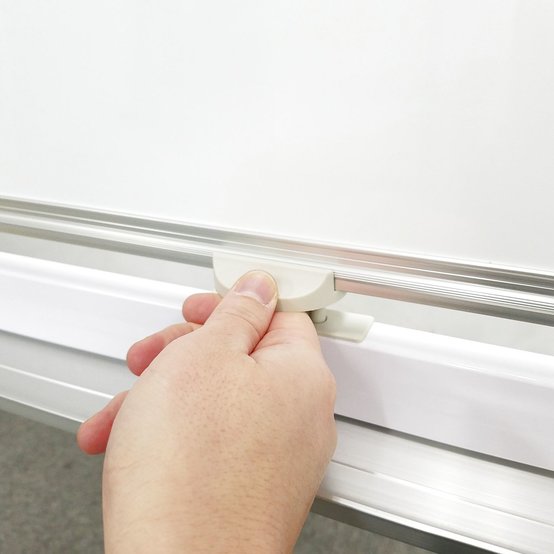 ホワイトボードの板面は、回転して両面を簡単に切り替えることができ、固定も簡単にできます。