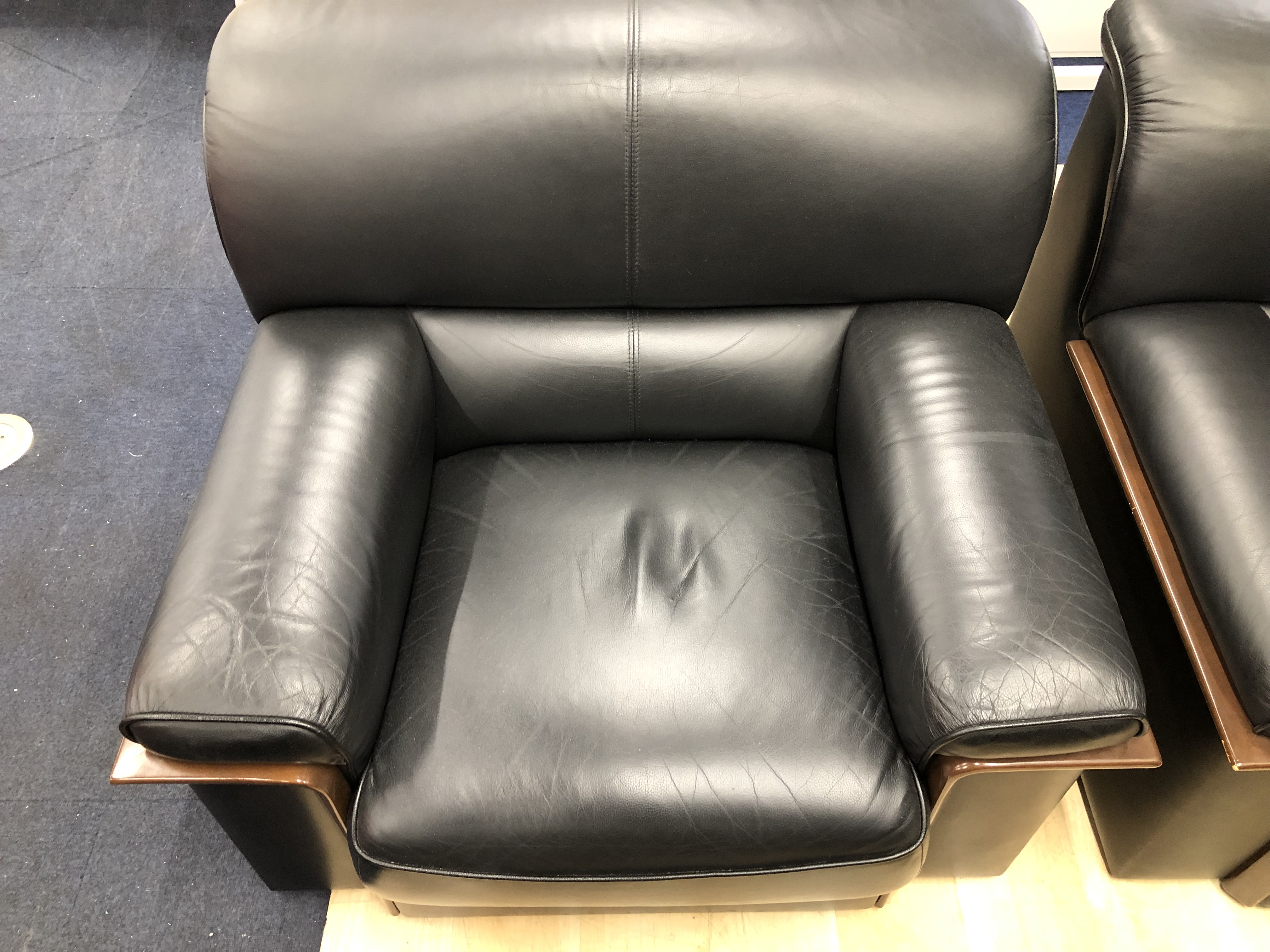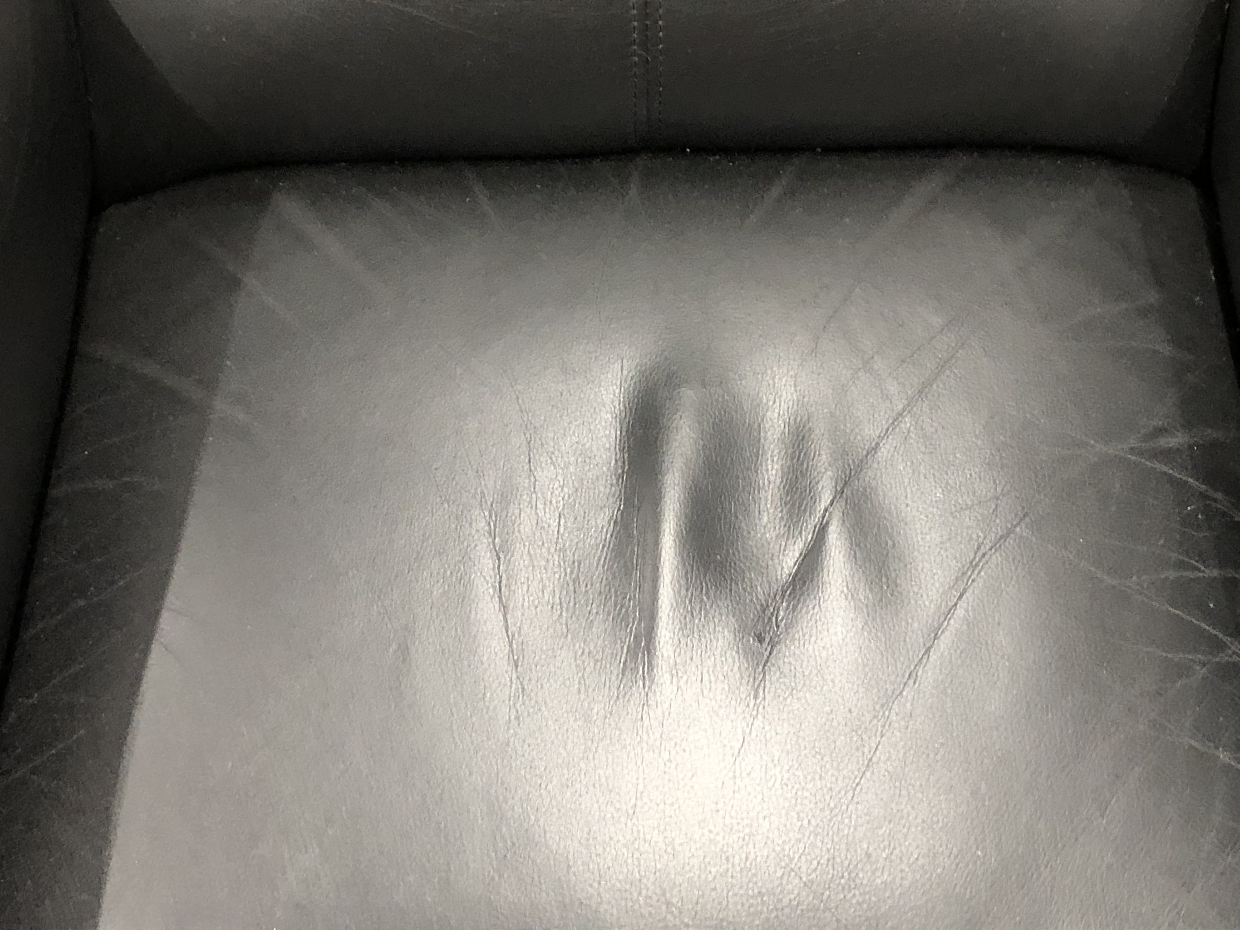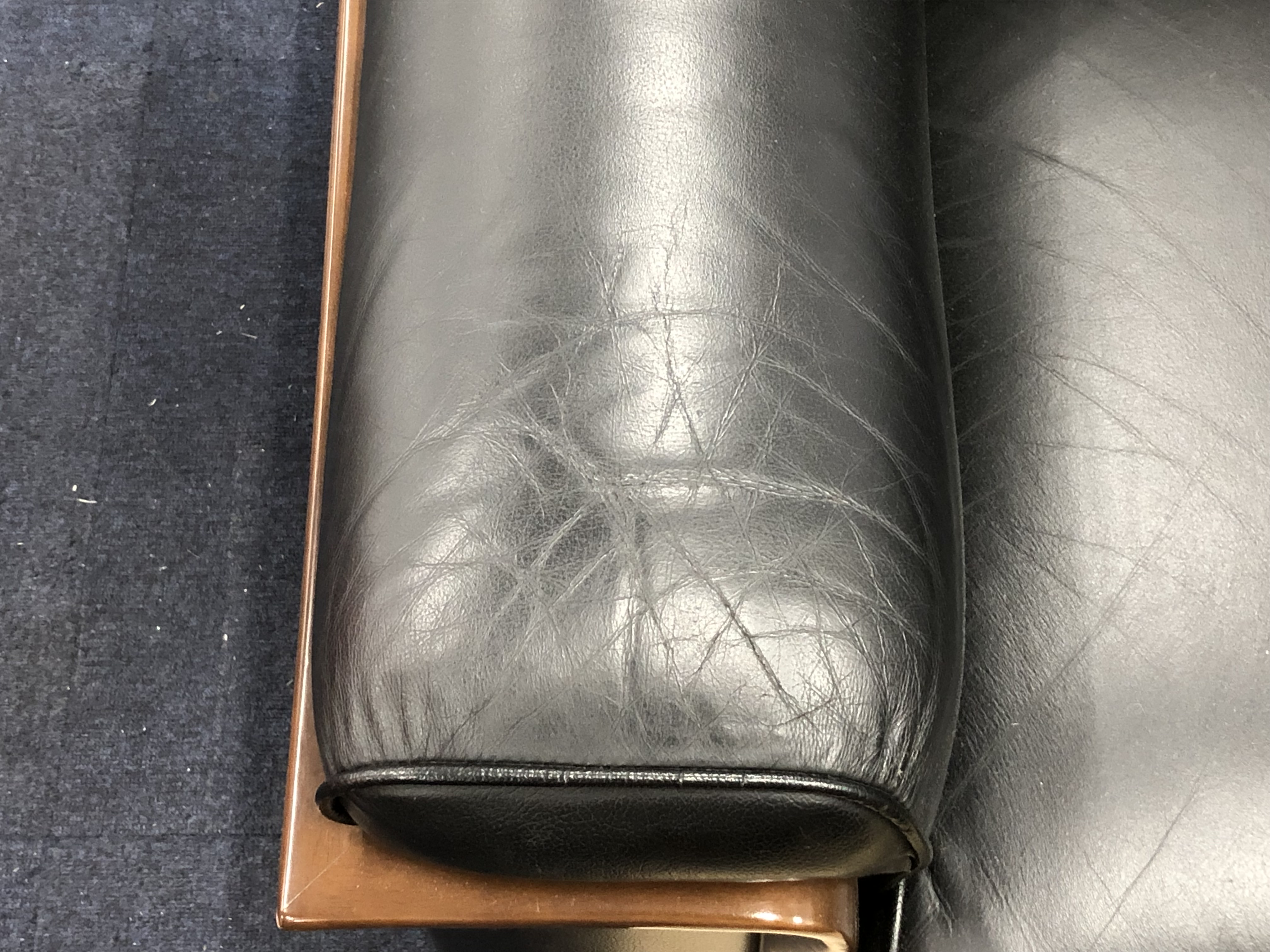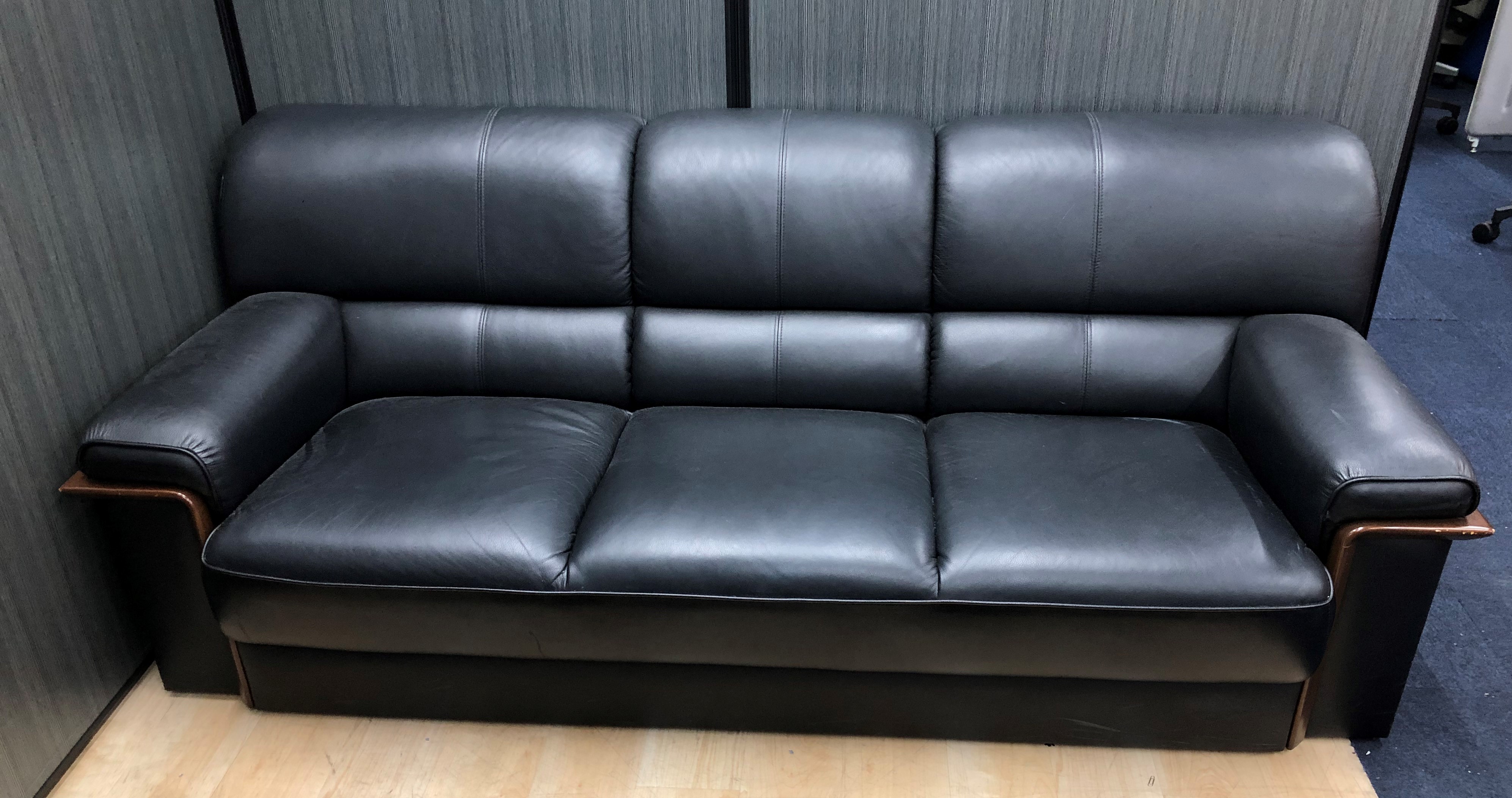 ソファは全体的に使用感があり、しわやヨレ・擦りキズが複数個所あります。