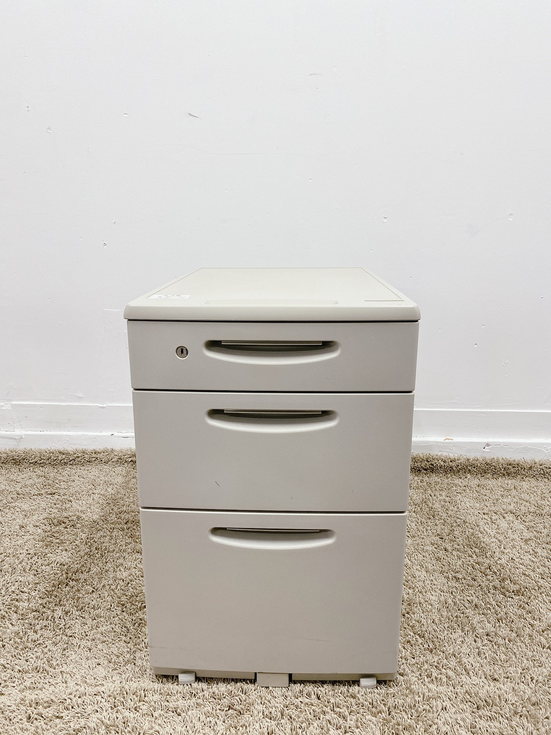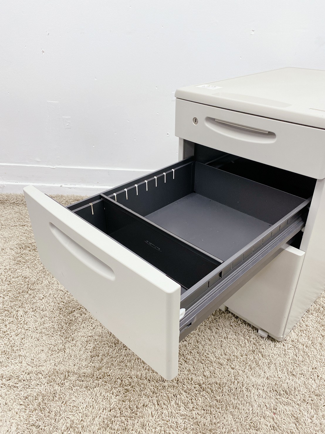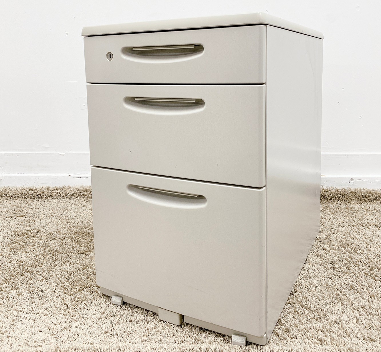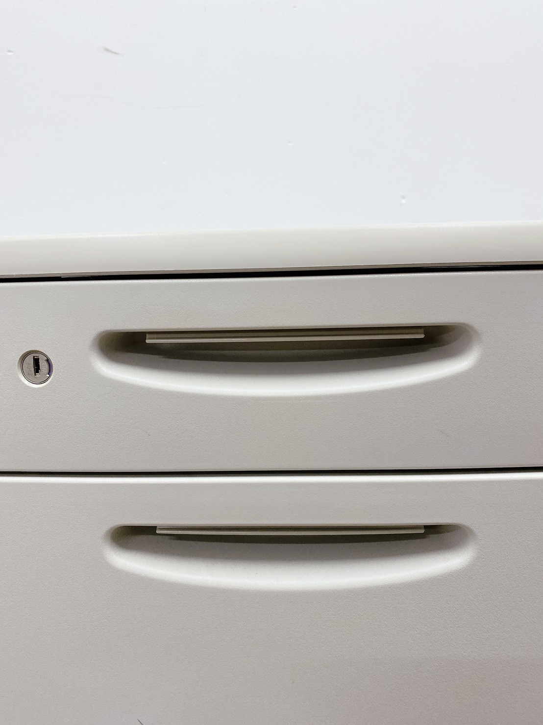 【大人気オカムラ製3段デスクワゴン!天板の把手とキャスターで移動がらくらく!デスク下に置いて収納力アップ!】■オカムラ(okamura)製 SDシリーズ 3段ワゴン デスクインワゴン H610㎜ ■ニューグレー ■シリンダー錠
