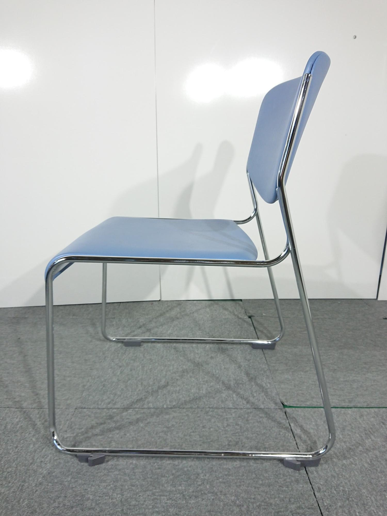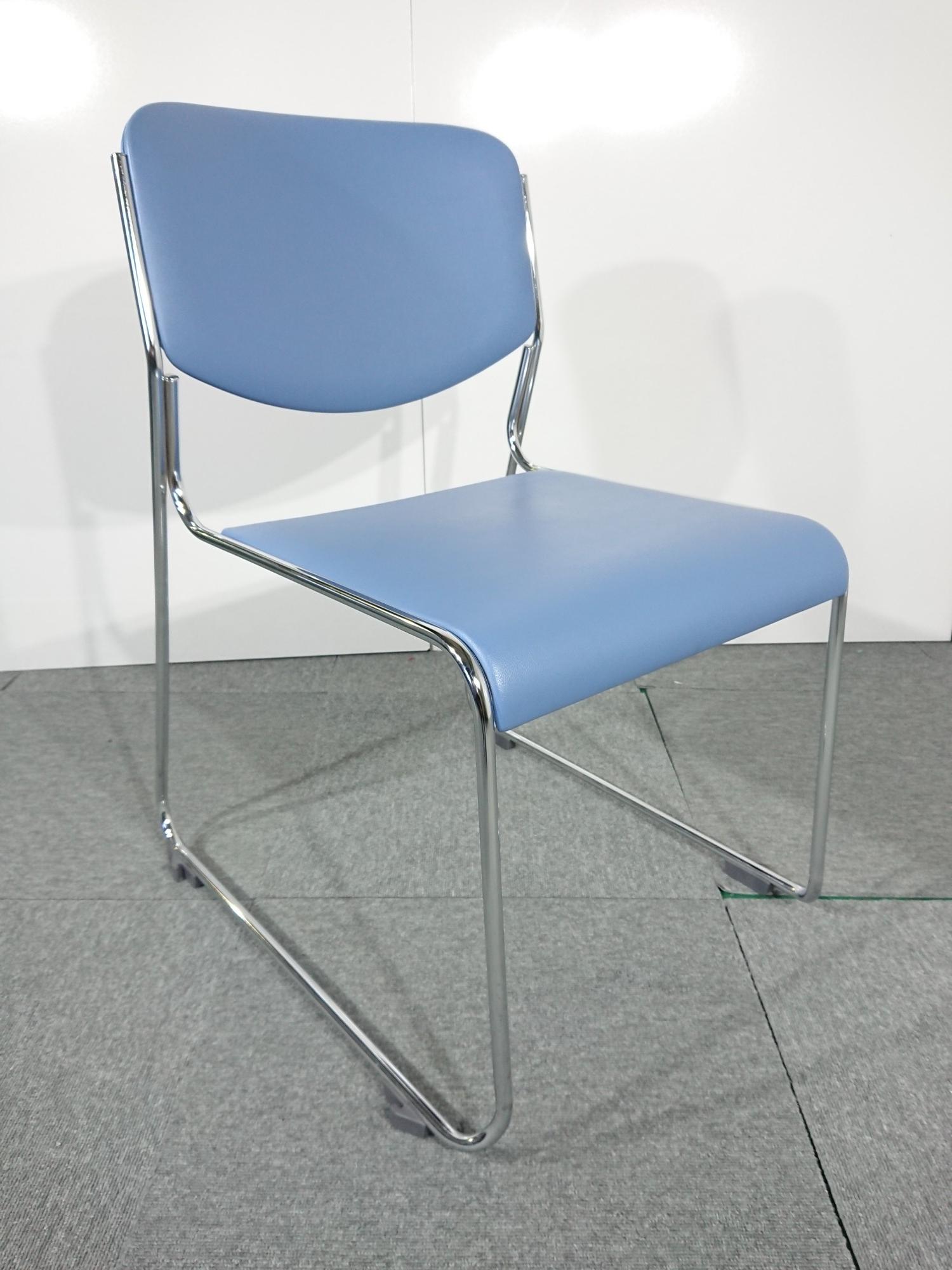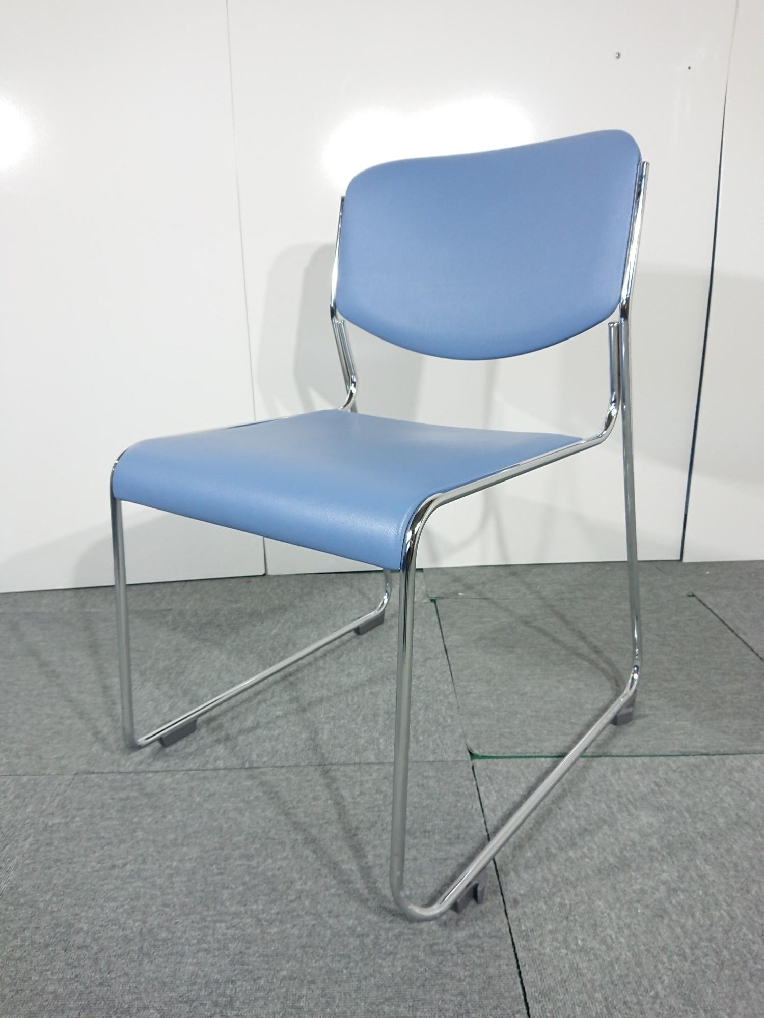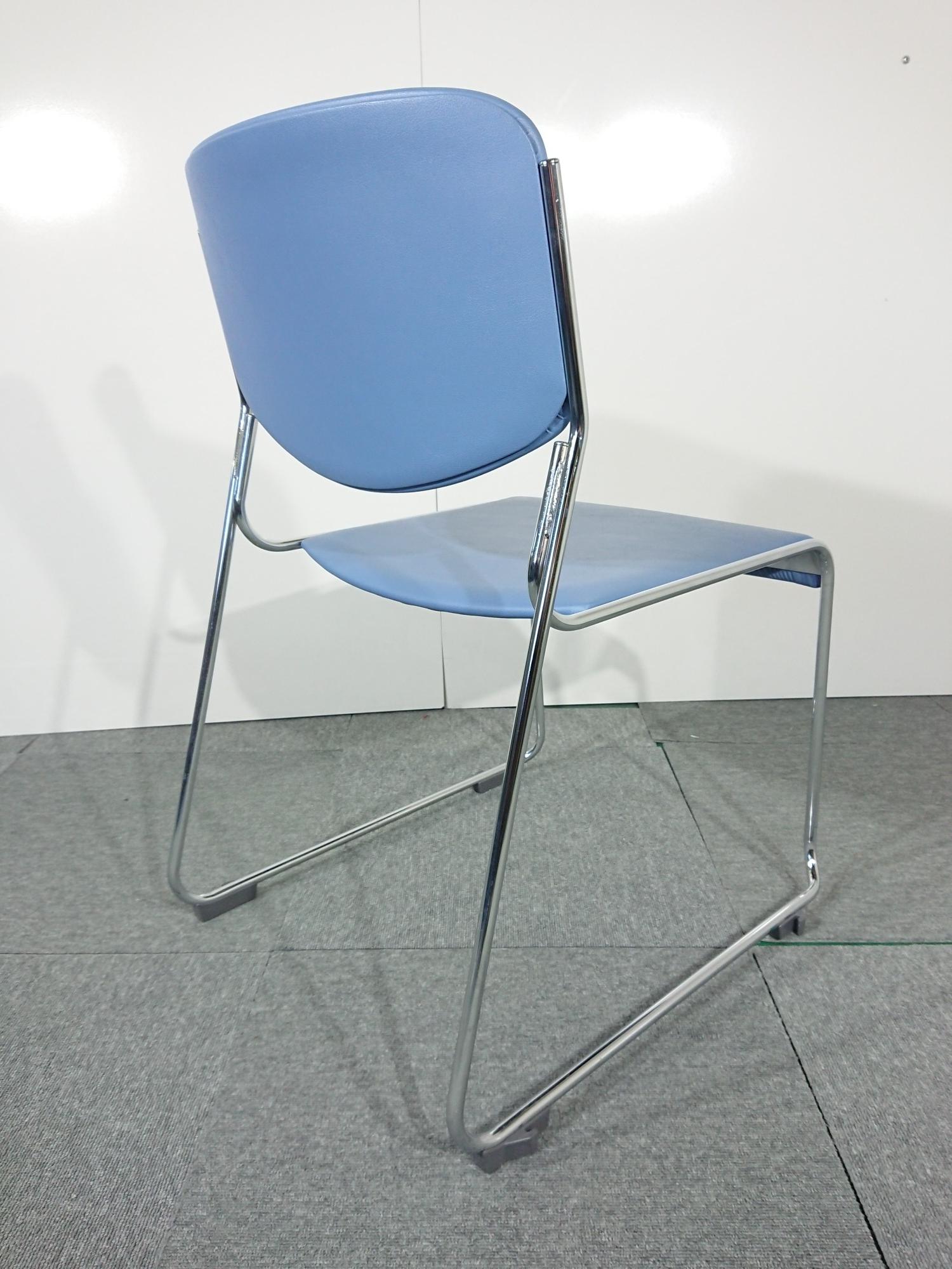 【4脚セット】コクヨ製 ブルー ビニールレザー スタッキングチェア!!【関西倉庫在庫】- なんば日本橋店